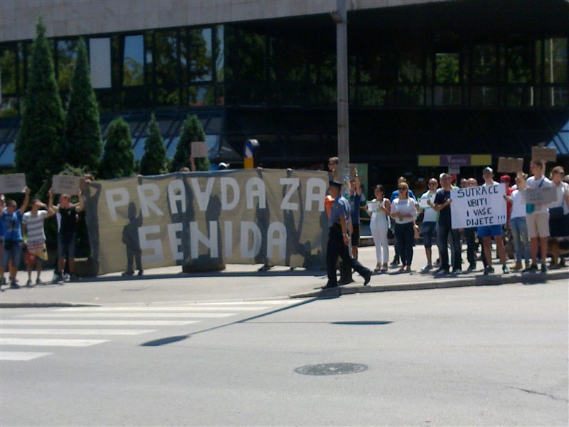 -Ne mogu da vjerujem da nismo pozvani ni da svjedočimo, nismo znali ni da je suđenje obavljeno-, kroz suze je govorio Senidov otac Fikret Kulačić.Protesti su završeni oko 12,30 sati.