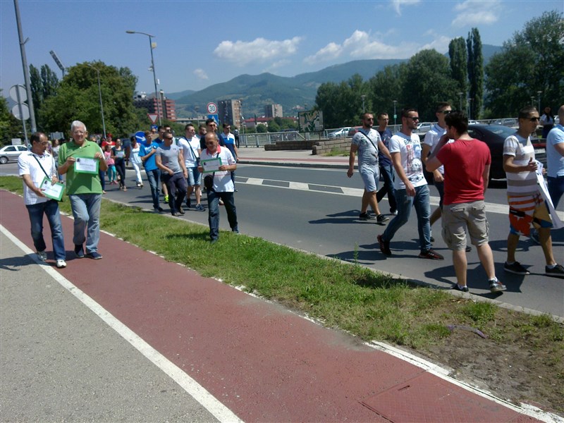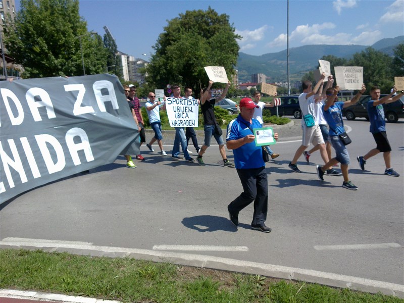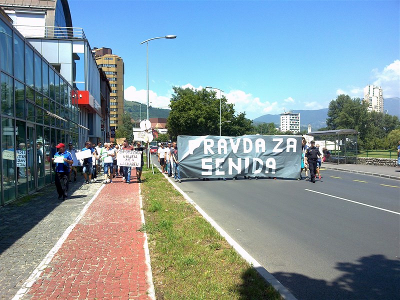 Nošen je veliki transparent PRAVDA ZA SENIDA, a i dosta manjih transparenata koji su nosili učesnici protestne šetnje. Kretalo se od sjeverne tribine stadiona Bilino polje, zatim Bulevarom do Čaršijske džamije, Bosanka, Titova ulica do Zeničanke, Masarikova ulica do Kantonalnog suda.