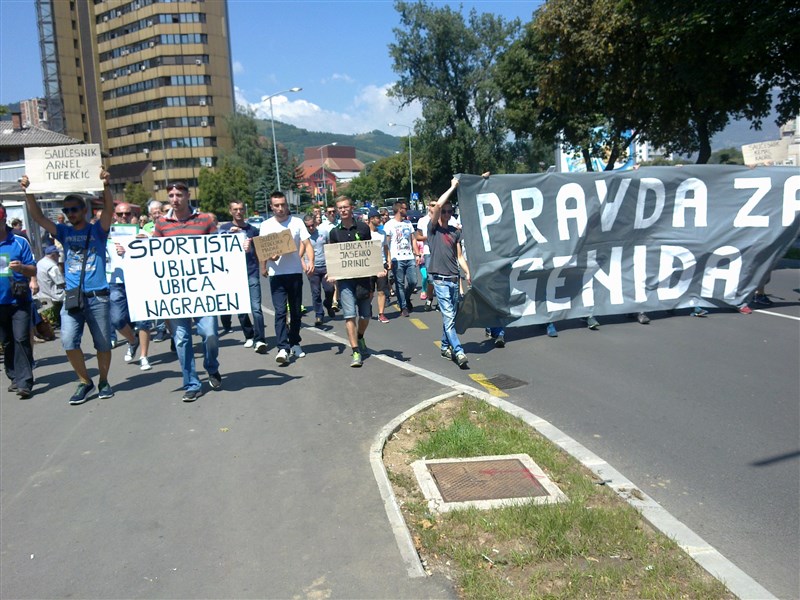 Kako smo saznali iz izjava prošle sedmice je Vijeće Kantonalnog suda u Zenici Jasenka Drinića, ubicu Senida Kulačića, osudilo na 4,5 godina zatvora. Senidovi roditelji, ostala rodbina, prijatelji i poznanici, kao i drugi građani, su danas na protestnom okupljanju, i kasnije u šetnji centrom grada, pa sve do Kantonalnog suda, iskazali nezadovoljstvo ovakvom presudom.