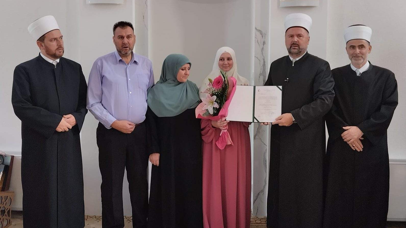 U prisustvu porodice nove hafize, hafiza i imama Medžlisa Zenica, Uvjerenje o položenom hifzu je uručio muftija zenički hafiz prof. dr. Mevludin ef. Dizdarević uz srdačne čestitke novoj hafizi i porodici Spahić.