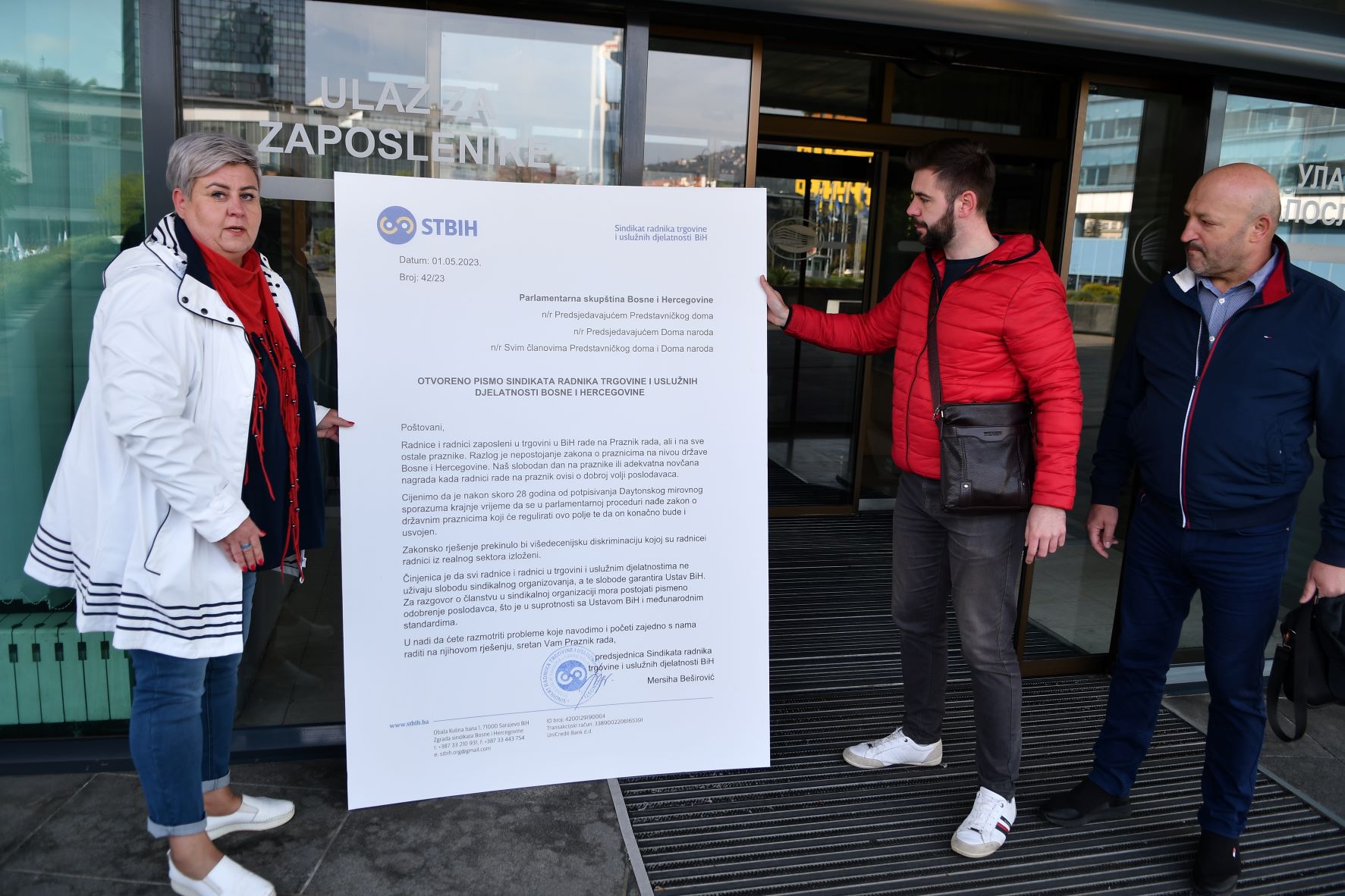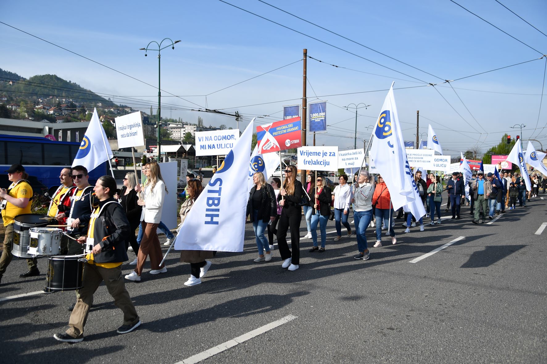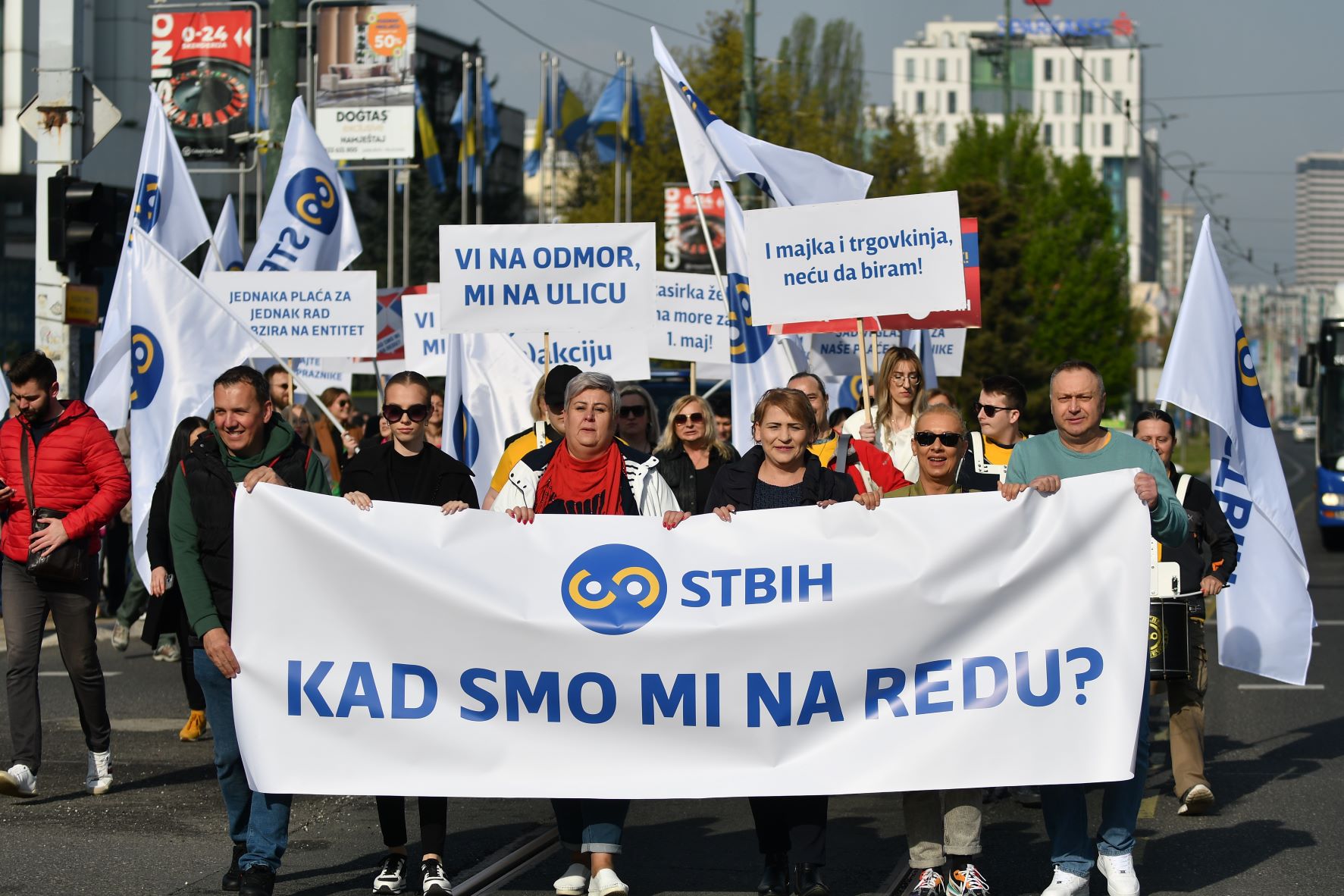 Sindikat trgovine Bosne i Hercegovine (STBIH) povodom Međunarodnog dana rada organizirao je Prvomajski protestni uranak ispred zgrade Parlamentarne skupštine BiH pod nazivom „Kada smo mi na redu?“, a zatim i protestnu šetnju do Parlamenta Federacije BiH.