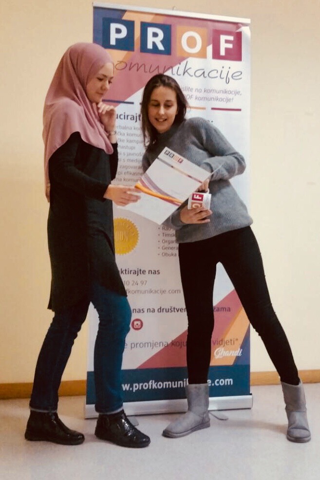 “Po Ruthu Schwanzeru svijet poimamo 78 posto putem vida, 13 posto putem sluha, tri posto putem opipa, tri posto putem mirisa i tri posto putem okusa. Zapamtimo 40 posto onoga što vidimo, no samo 20 posto onoga što čujemo. Ako je to zaista tako, onda su ove statistike najbolji dokaz zašto su potrebne edukacije na temu vizualnih komunikacija”, rekla je Alisa Vrabac, koordinatorica projekta ispred PROF komunikacija.