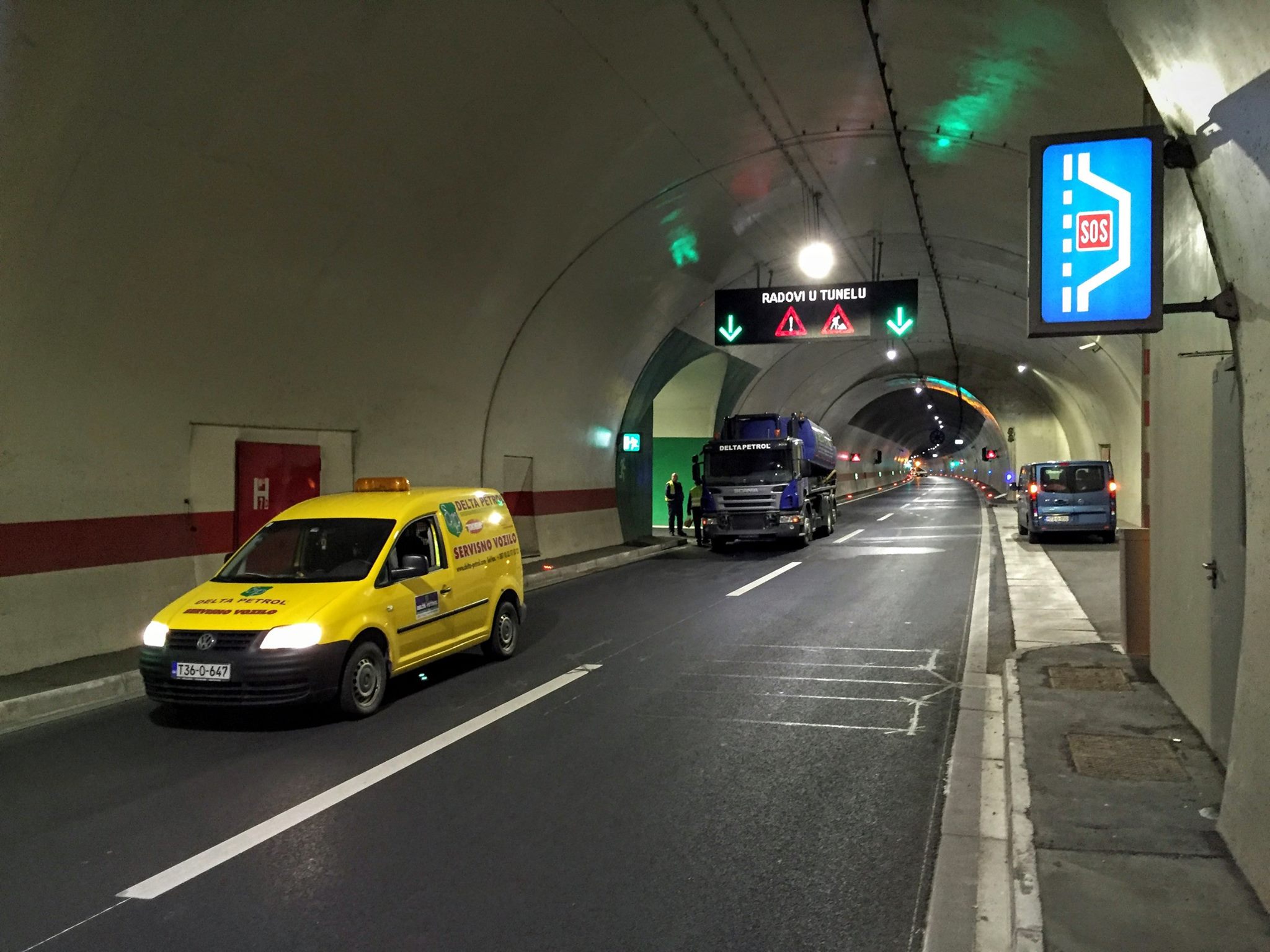 · od 20.04.2016. godine od 00:00 h do 21.04.2016. godine do 24:00 h biti će zatvorena za saobraćaj desna cijev tunela i saobraćaj će se odvijati u režimu dvosmjernog saobraćaja kroz lijevu cijev tunela.
