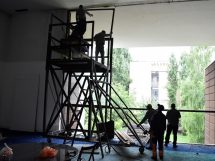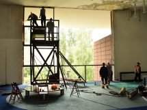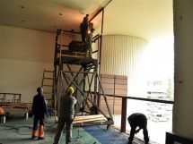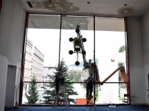 Nakon prošlogodišnjih uspješno završenih radova na sanaciji fasade Bosanskog narodnog pozorišta Zenica, u toku su radovi na rekonstrukciji staklenih fasadnih ploha na prostoru Gornjeg foajea Zeničkog teatra koje su, usljed olujnog nevremena, kompletno uništene u januaru 2016. godine.