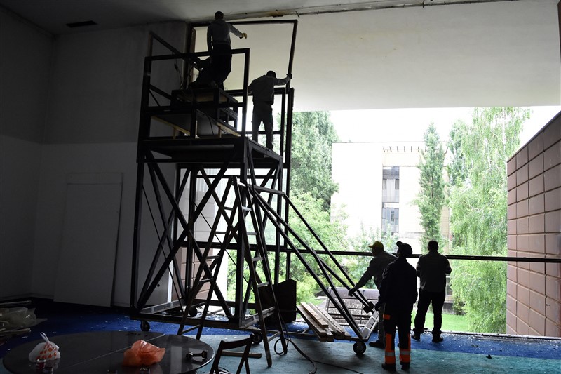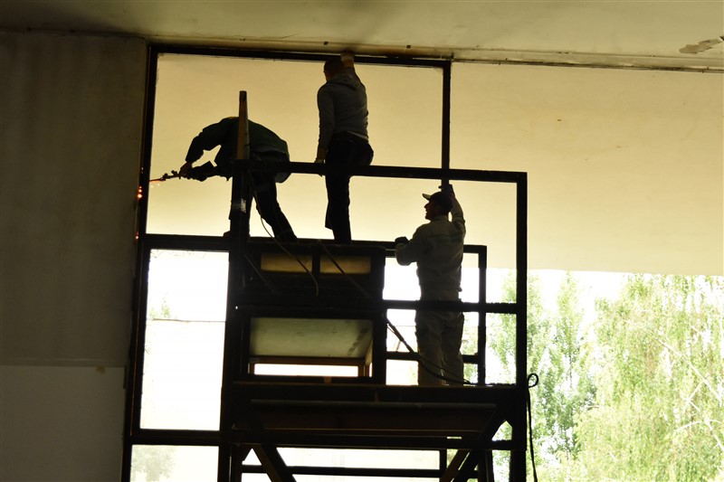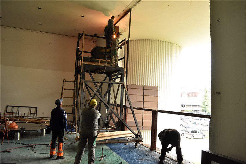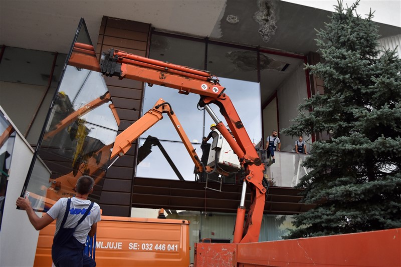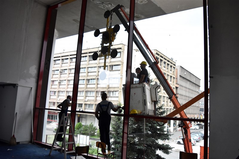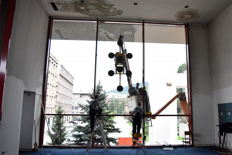 Nakon prošlogodišnjih uspješno završenih radova na sanaciji fasade Bosanskog narodnog pozorišta Zenica, u toku su radovi na rekonstrukciji staklenih fasadnih ploha na prostoru Gornjeg foajea Zeničkog teatra koje su, usljed olujnog nevremena, kompletno uništene u januaru 2016. godine.
