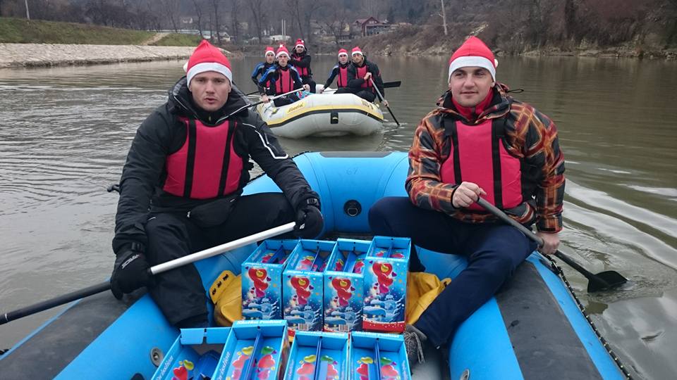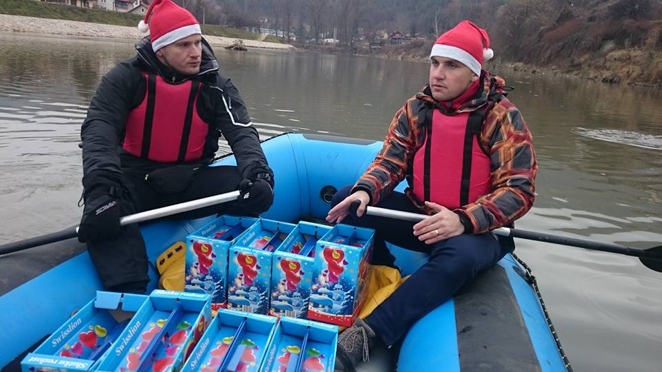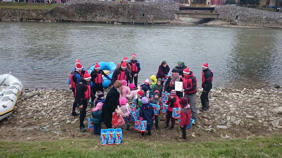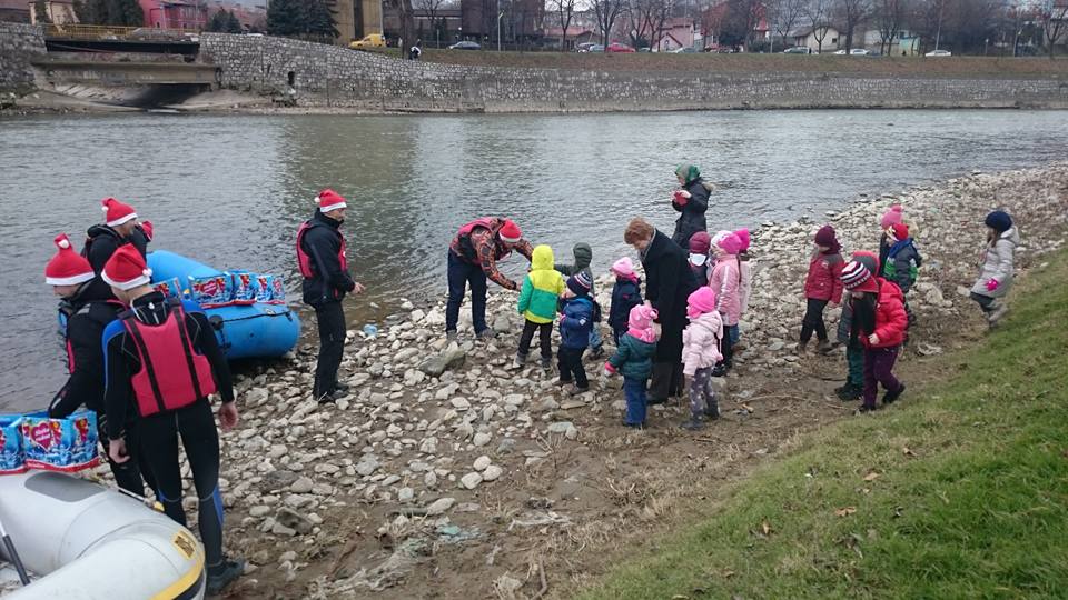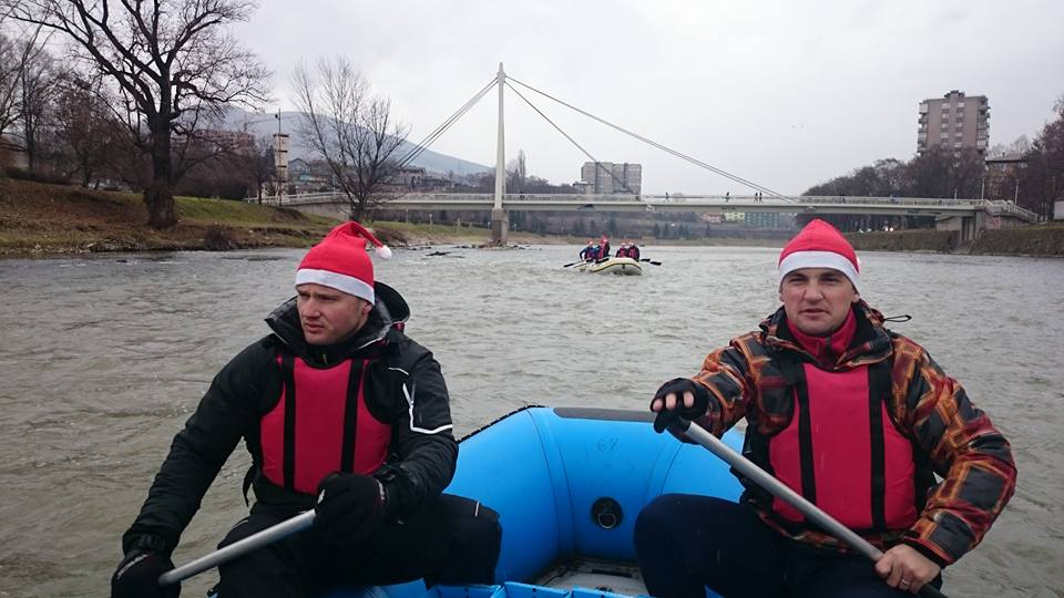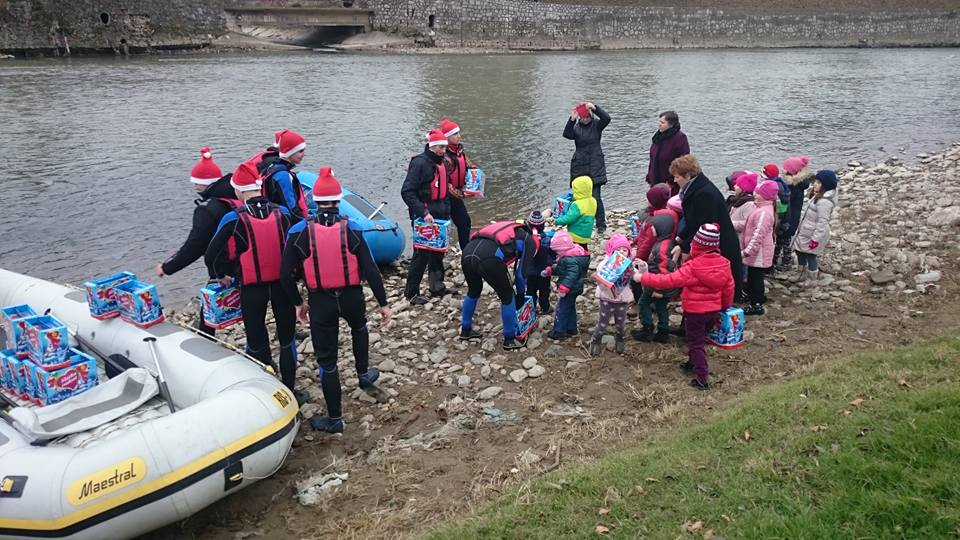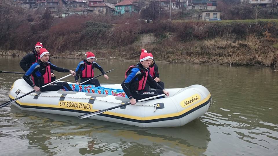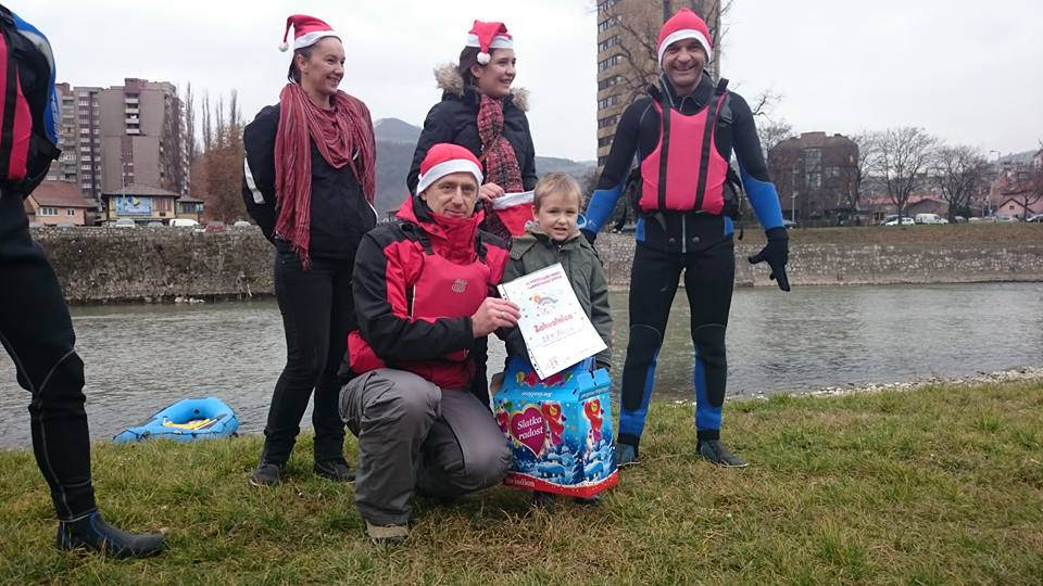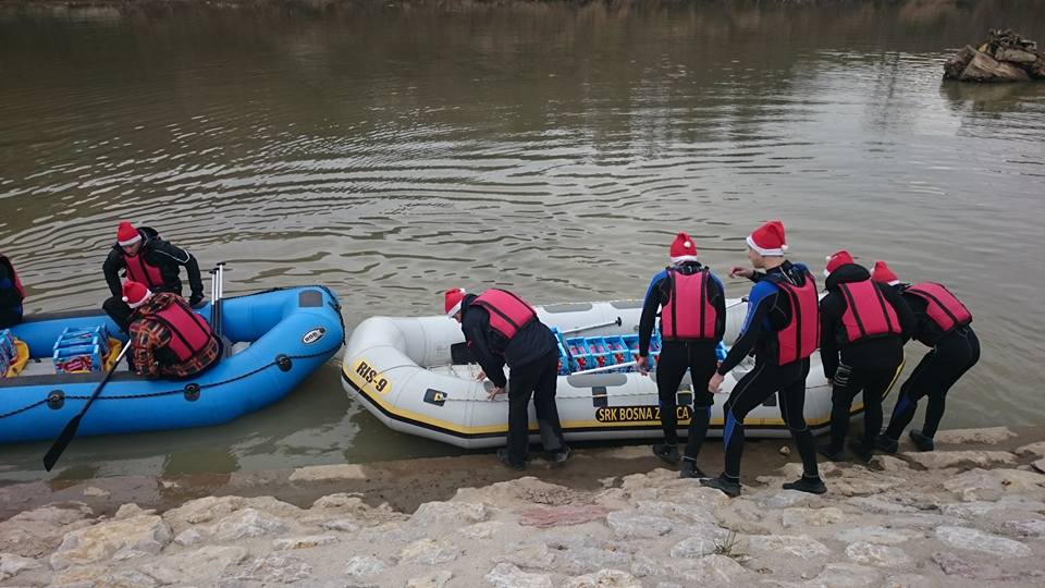 Foto: Rafteri dijeli paketiće mališanima – Sportsko-rekreativni klub (SRK) Bosna organizirao je danas novogodišnji rafting za članove kluba. Tom su prilikom podijelili paketiće za djecu obdanista Poletarac iz Zenice, kako oni to i znaju, na obali Bosne.