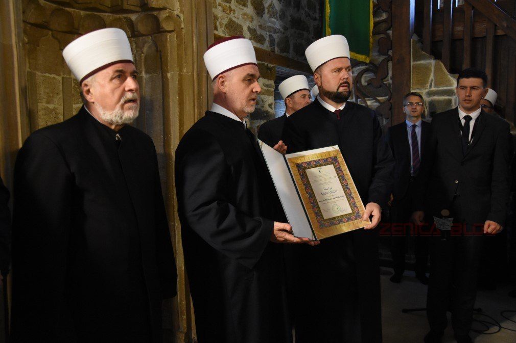 FOTO: Reis Kavazović dodijelio muraselu zeničkom muftiji Mevludinu Dizdareviću – Reisu-l-ulema Islamske zajednice u Bosni i Hercegovini Husein ef. Kavazović na prigodnoj svečanosti u Sultan Ahmedovoj džamiji (Čaršijska džamija) u Zenici večeras je inaugurirao te uručio muraselu novom muftiji zeničkom hafizu Mevludinu ef. Dizdareviću.