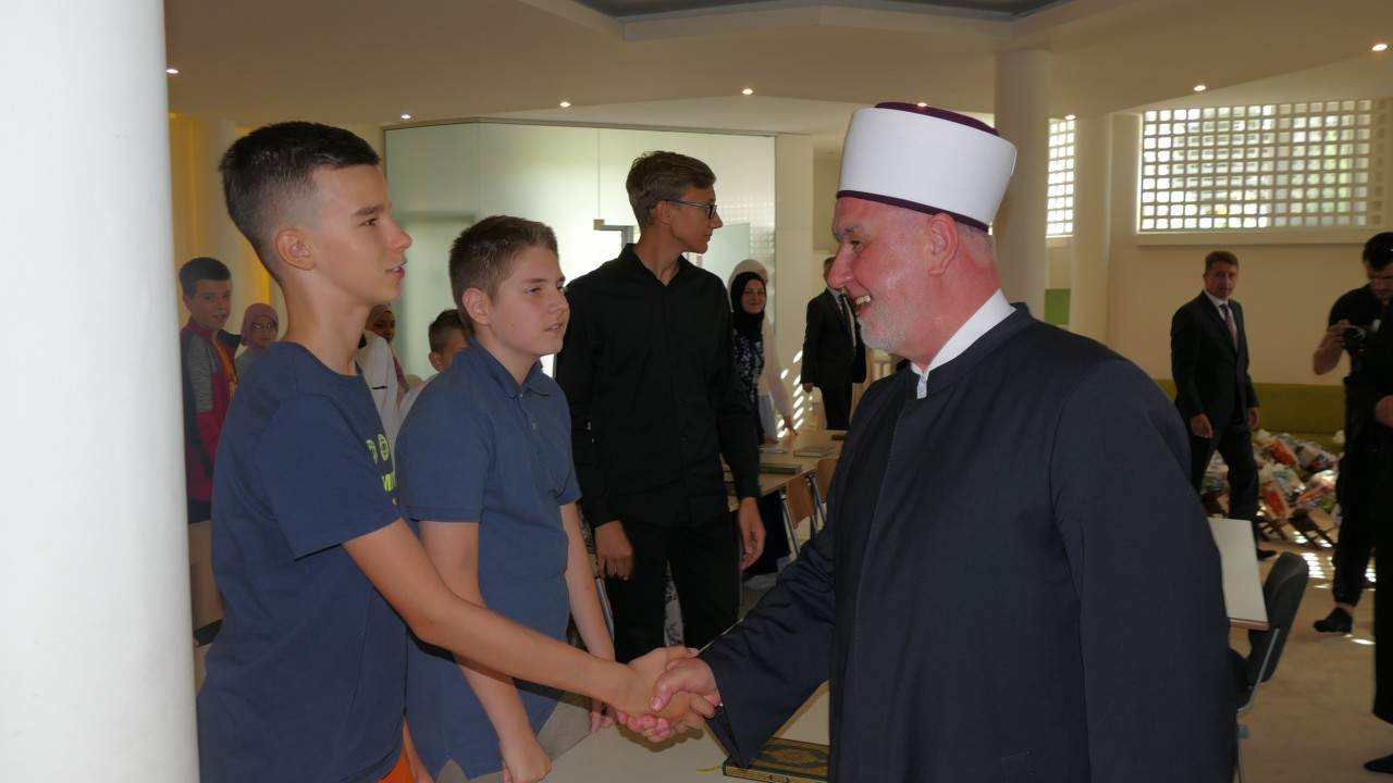 – Bitno je da se trudimo i postignemo određene rezultate. Želim da iz mekteba ponesete lijepe uspomene kao prijatelji i prijateljice i to je ono što će vam biti važno u životu. Nadam se da ćete biti na pomoći svojim porodicama i paziti jedni druge. U mektebu stječemo određena znanja, ali i odgajamo se kako bismo se lijepo odnosili prema drugima – kazao je reisul-ulema Kavazović učenicima i poslušao kako uče u Kur’anu.