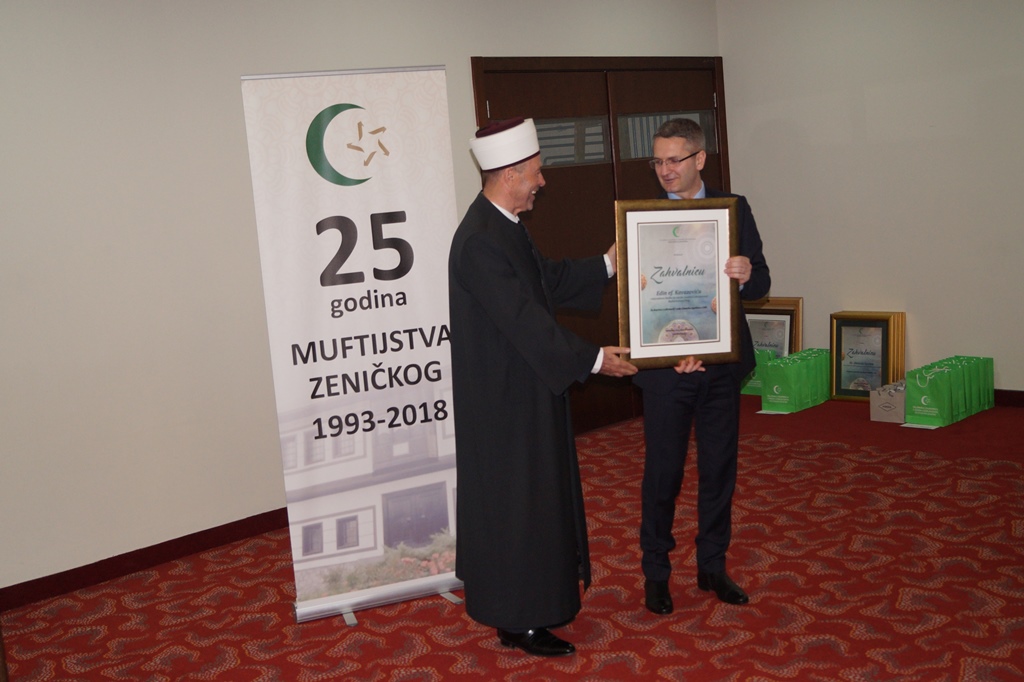 Također, muftija je istakao: ”U radu i afirmaciji Muftijstva zeničkog najveći doprinos i podršku davali su Reisu-l-ulema, Sabor IZ u BiH, Vijeće muftija, Rijaset IZ u BiH i medžlisi Islamske zajednice Muftiluka zeničkog. Zato sam, prije svega, zahvalan reisu-l-ulemi dr. Husein ef. Kavazoviću. Zahvalu izričem i prvom muftiji zeničkom hfz. prof. dr. Halilu Mehtiću, za veliki doprinos u etabliranju Muftijstva i oblikovanju njegove uloge u vjerskom životu zajednice. Naravno, zahvalnost  upućujem  imamima, muallimima, muallimama, glavnim imamima, džematskim odborima, predsjednicima medžlisa i članovima Sabora IZ s područja Muftiluka zeničkog – za nemjerljivi doprinos u opstanku, organiziranju, reaktiviranju, stabiliziranju i širenju islama i islamskih vrijednosti, posebno u vremenu agresije i genocida i postratnog reaktiviranja rada džemata i medžlisa Islamske zajednice”.