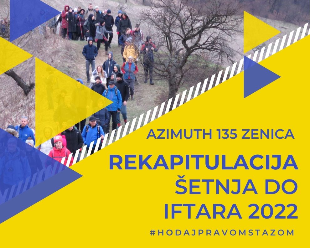 Prva Šetnja, 03. aprila 2022. godine, okupila nas je 114, bila je najkraća, ali i najhladnija. Planinarili smo potpuno novom stazom i bili na potpuno novom vidikovcu. Vodila nas je iz Gornje Zenice, preko Tavnika i Kicelja do Križa, gdje smo iftarili. Nakon toga smo se spustili na Luke i vratili se u grad. U vrijeme iftara
