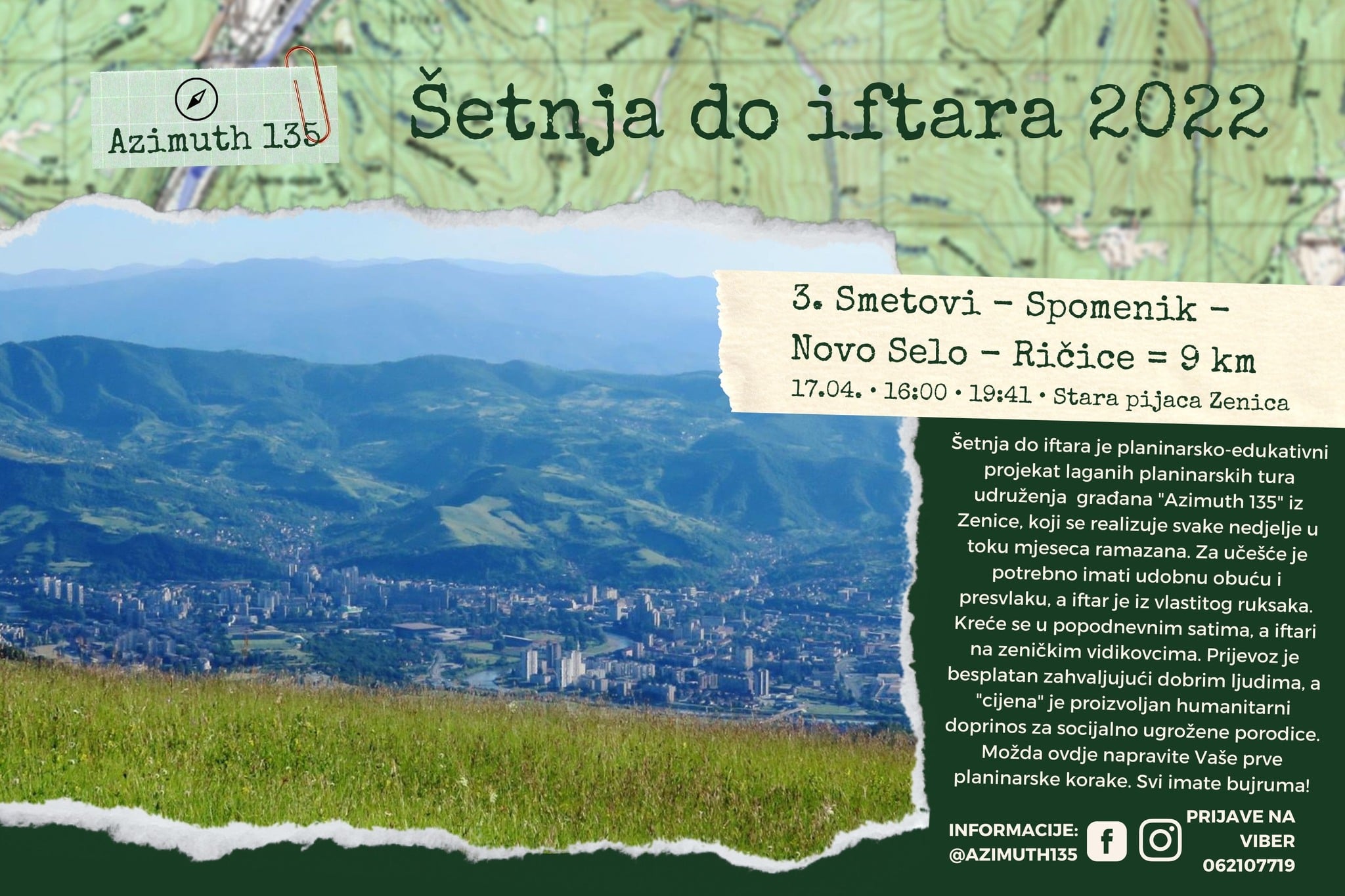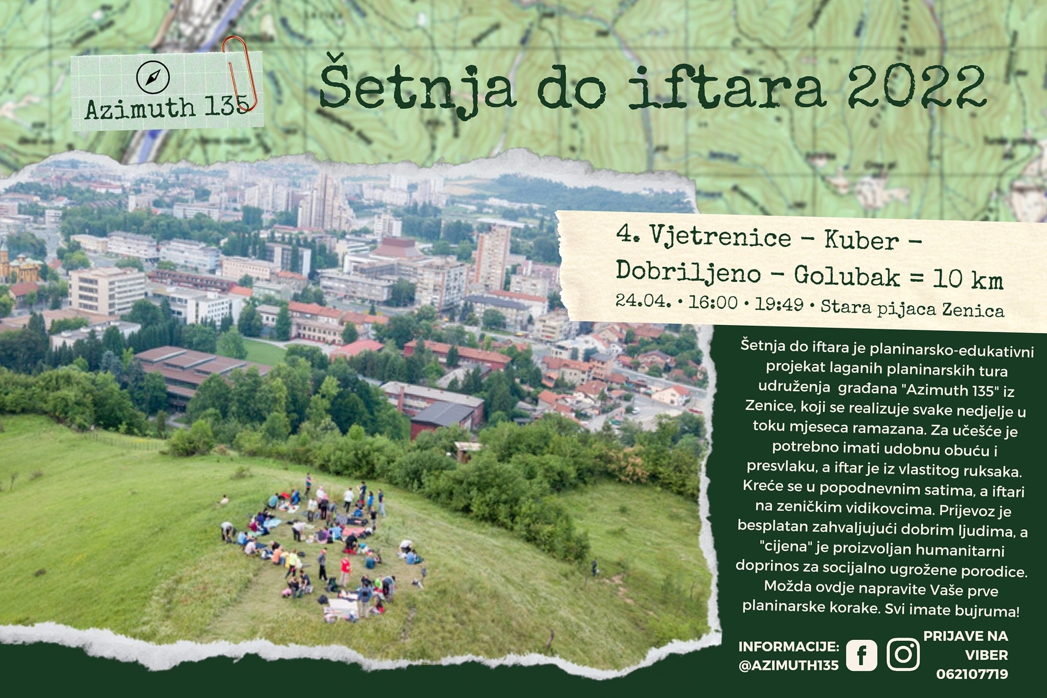 Za ostale naše aktivnosti, poput planinarskih tura za djecu #PorodicaPrirodaDruštvo, astronomskih posmatranja #SvemirskaTura, planinarskih tura za početnike #TuraOtvorenihVrata, ili (ne)običnih planinarskih tura, pratite naše profile www.facebook.com/azimuth135 i www.instagram.com/azimuth.135.
