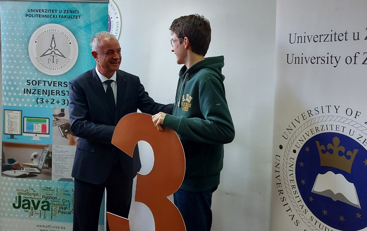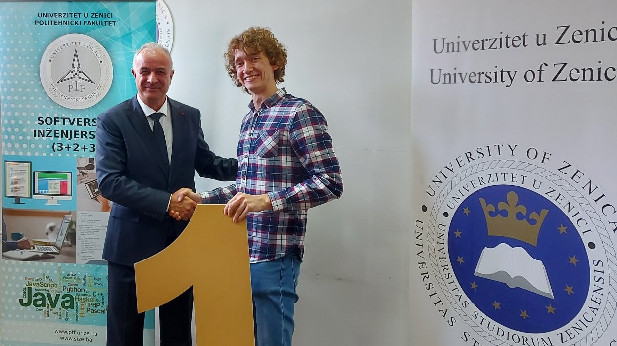 Pobjednike takmičenja danas je ugostio prof.dr.sc. Jusuf Duraković, rektor Univerziteta u Zenici uz prisustvo prof.dr.sc. Samira Lemeša, dekana Politehničkog fakulteta i prof.dr.sc. Spahije Kozlića, ministra za obrazovanje, nauku, kulturu i sport Zeničko-dobojskog kantona.