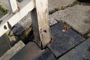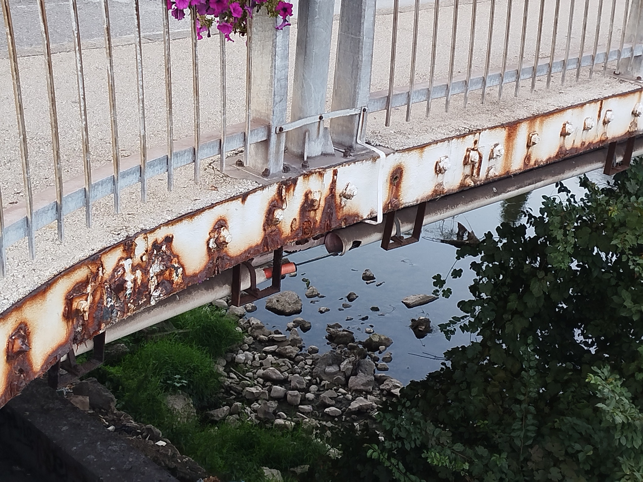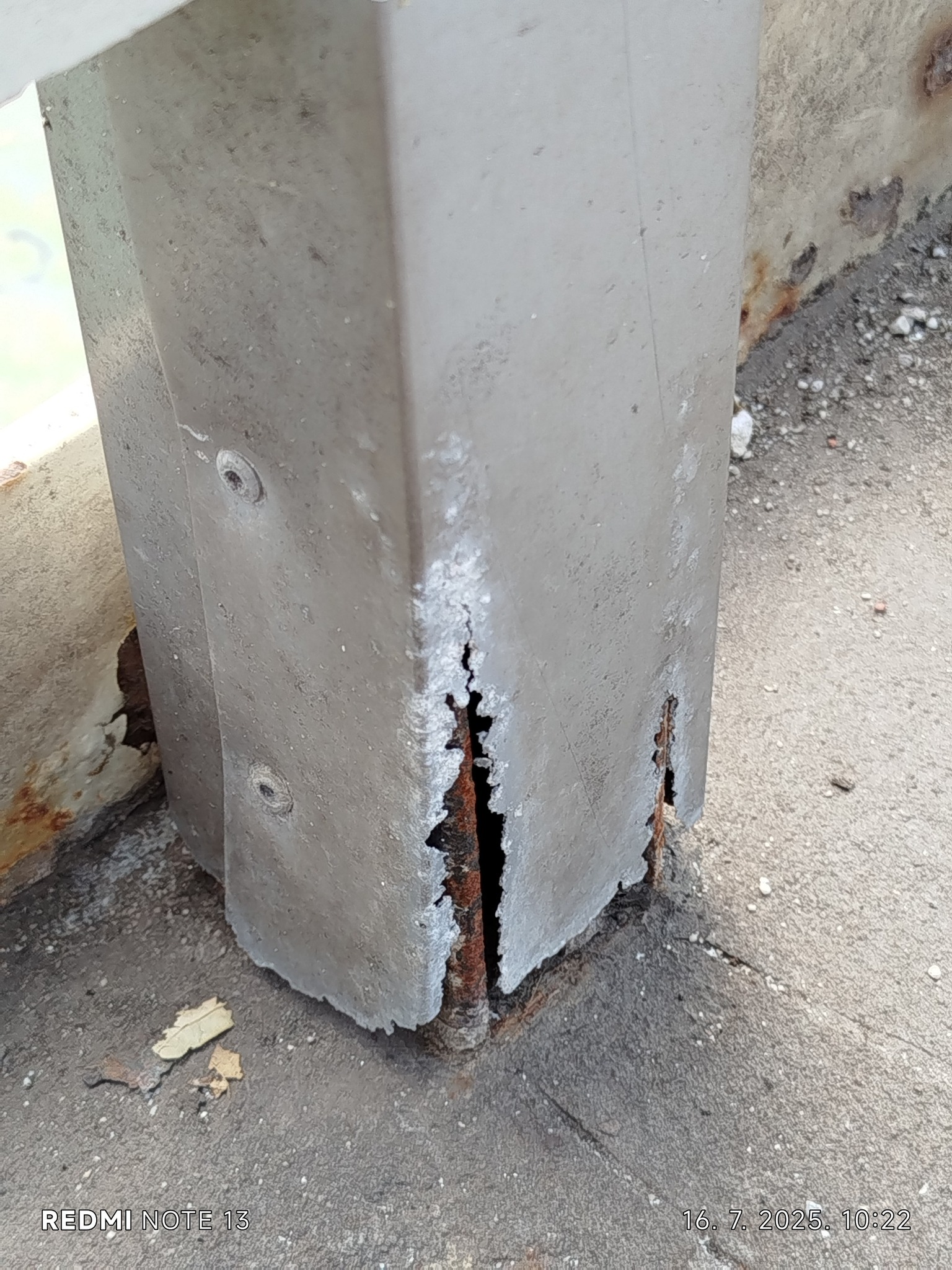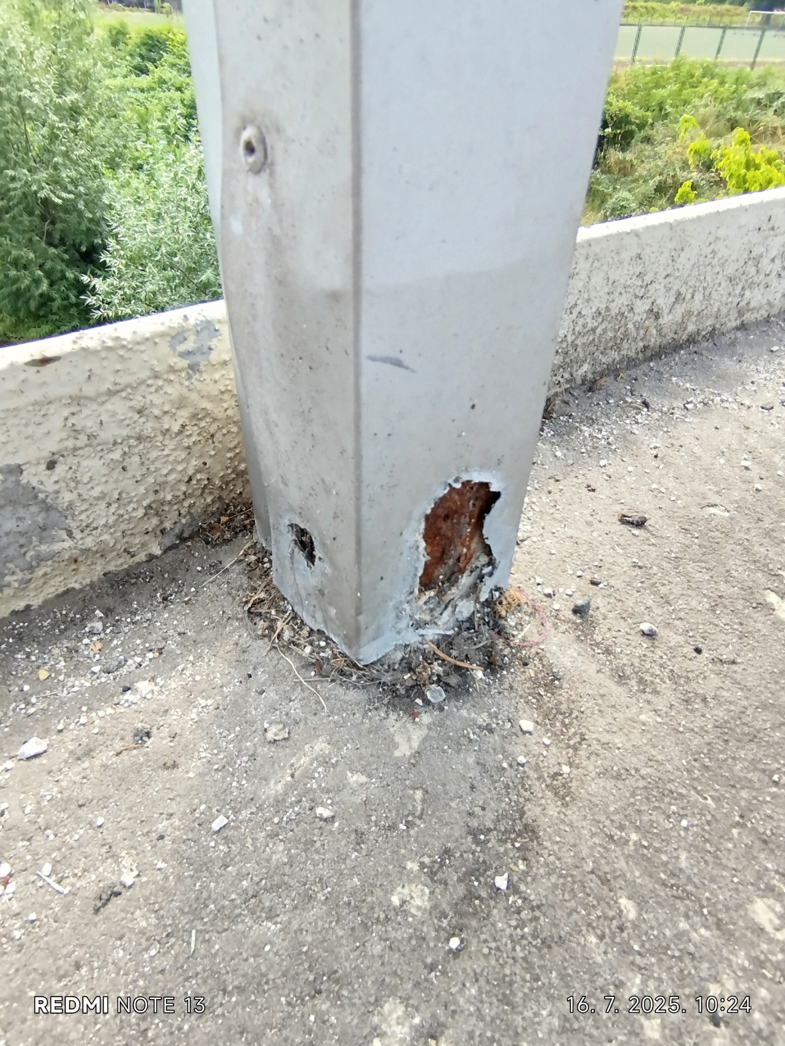 Prema njegovim riječima, stanje ograde već sada ukazuje na deformacije i naginjanje prema rijeci, dok jedan oštećeni vijak drži čitavu konstrukciju.