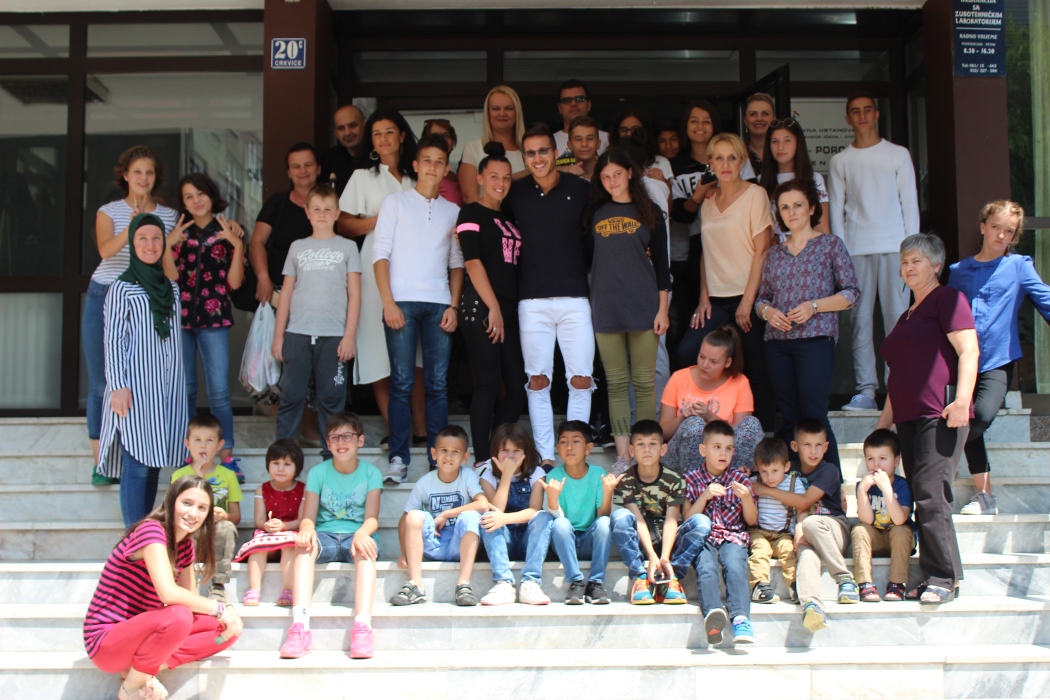 Mališani su imali iznenađenje za Sašu, dočekali su ga performansom i pjevajući njegove pjesme, te mu uručili zahvalnicu za posjetu, i oduševljena nastavila uživati sa Sašom.