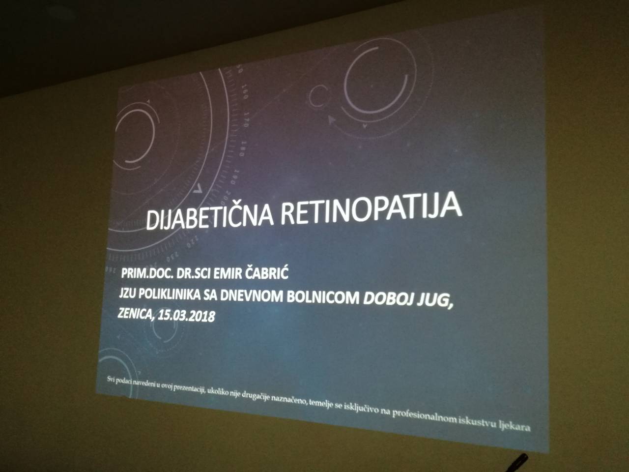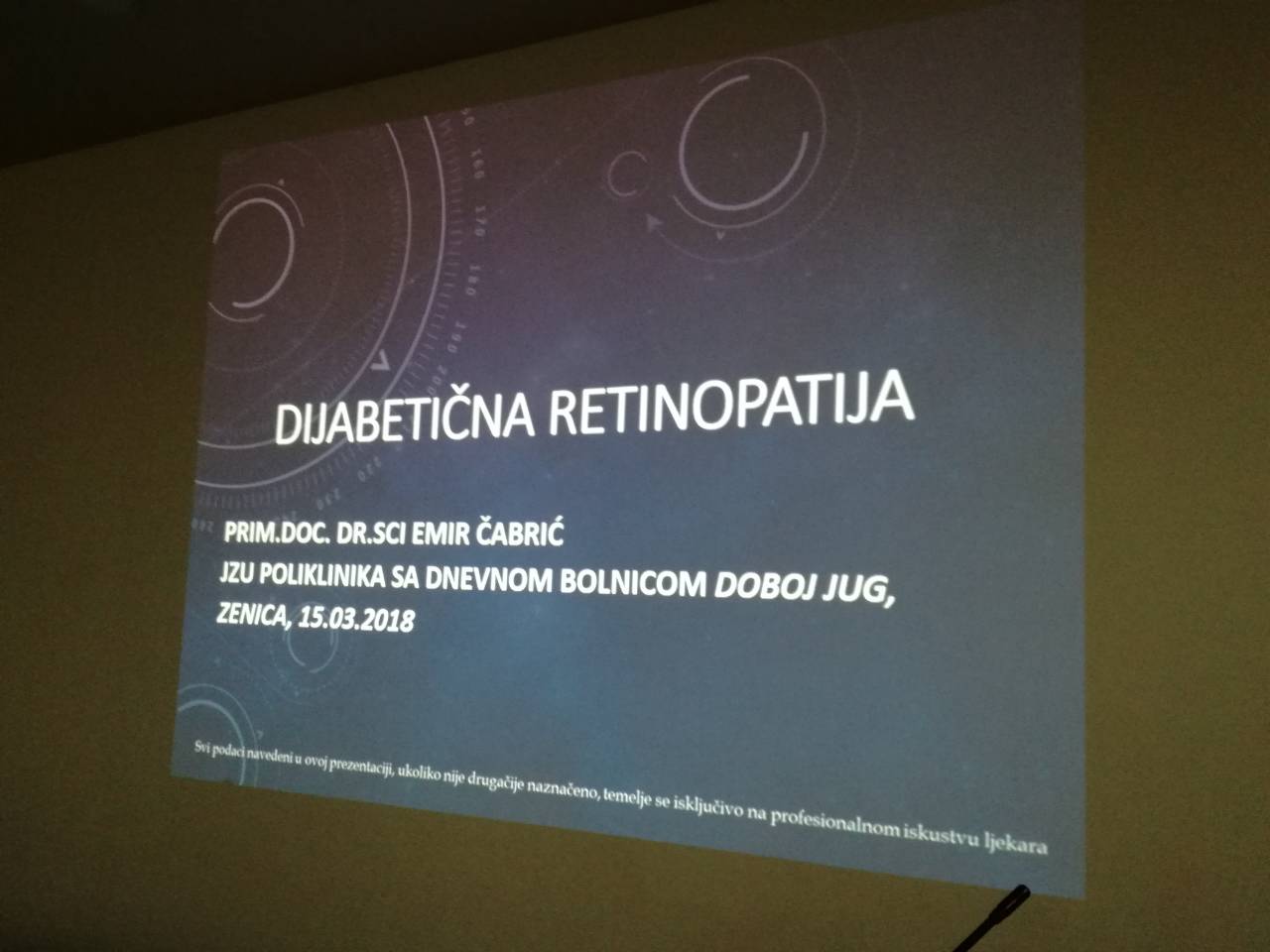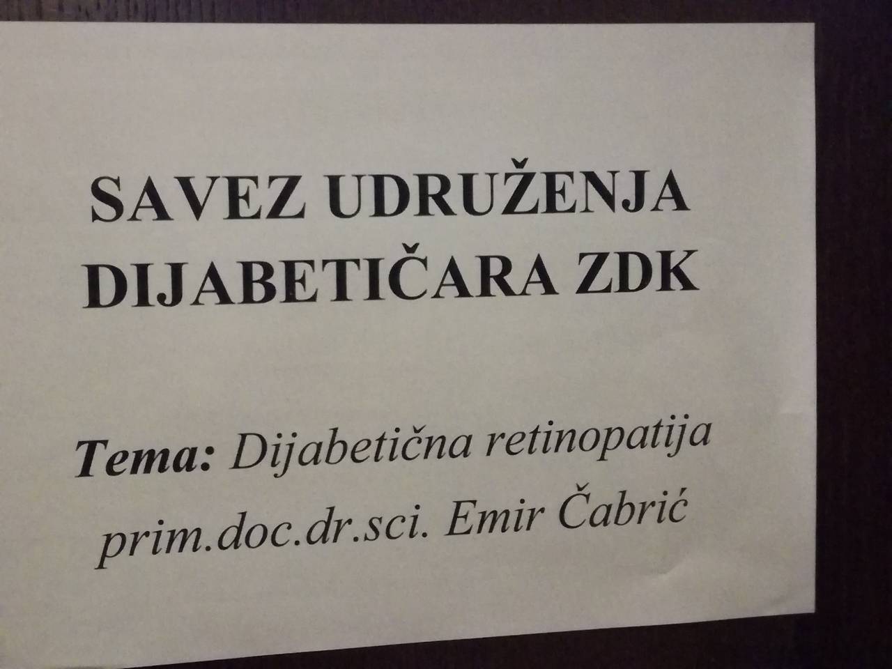 Angažovanjem medicinskih profesionalaca iz oblasti dijabetesa u hotelu Zenica je održano predavanje na temu dijabetične retinopatije i komplikacije na oku koje dolaze usljed neregularnih šećera u krvi i posljedice koje on donosi, u organizaciji Saveza udruženja dijabetičara ZDK. Istaknuto