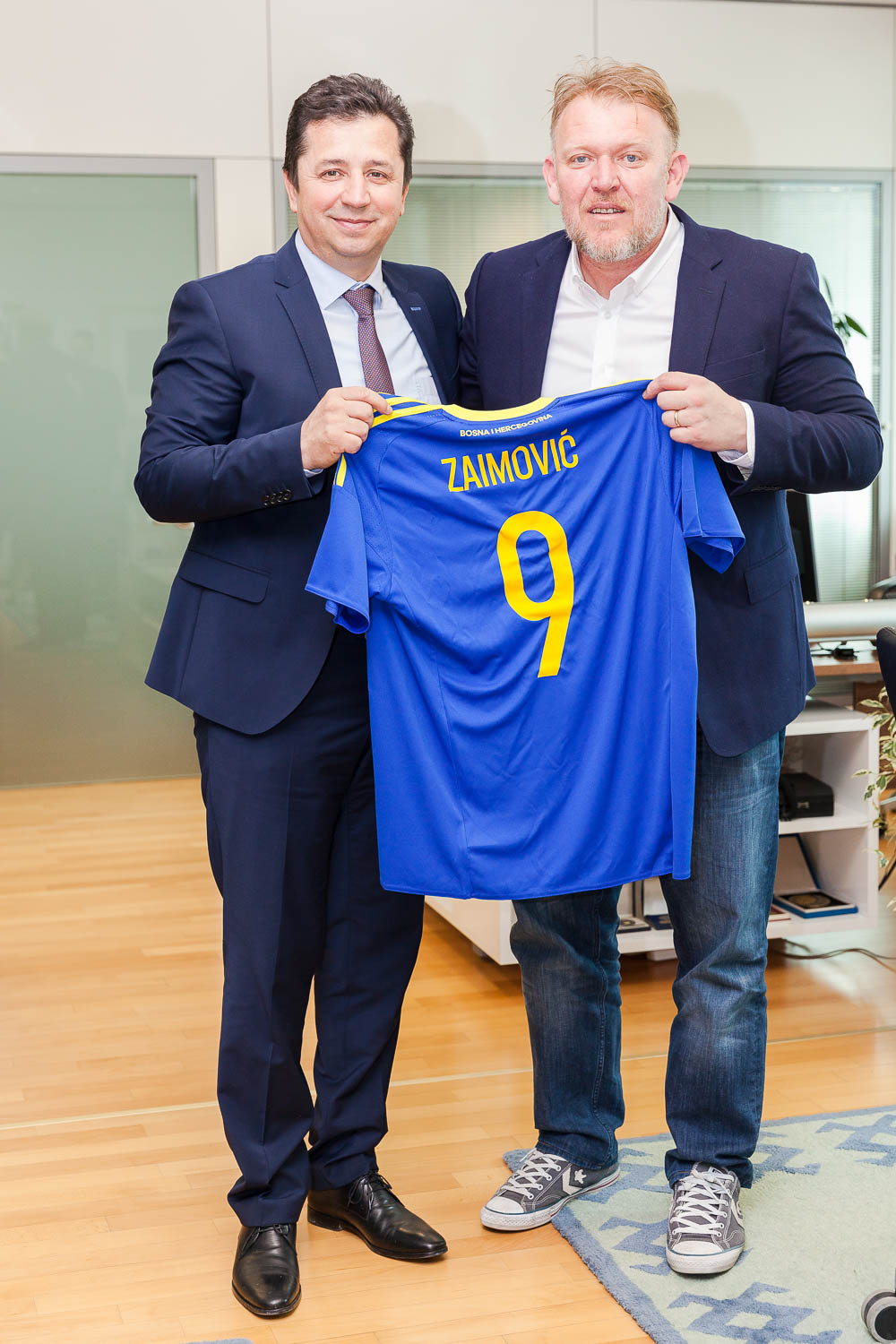 Sastanak sa ljudima iz NSBiH je direktor Zaimović iskoristio da u ime BH Telecoma zaželi dobrodošlicu novom selektoru „Zmajeva“ i uruči mu poklon – najnoviji Samsung Galaxy S9, koji će biti u prodaji u BH Telecomu već od 16. marta, dok je selektor direktoru Zaimoviću poklonio originalni dres broj 9 i fudbalsku loptu sa potpisom.