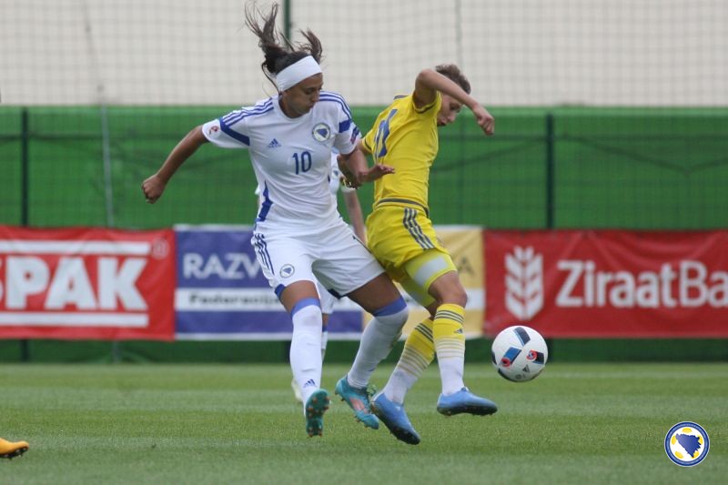 Foto: Seniorke BiH-Ukrajina 0:1 – Prijateljski susret ženskih seniorkih selekcija između BiH i Ukrajine odigran je danas u Trening centru NS/FS BiH u Zenici. Iako je bh tim stvorio više prilika, Ukrajinke su pobijedile sa 0:1 golom Olhe Ovdiychuk u 58′.