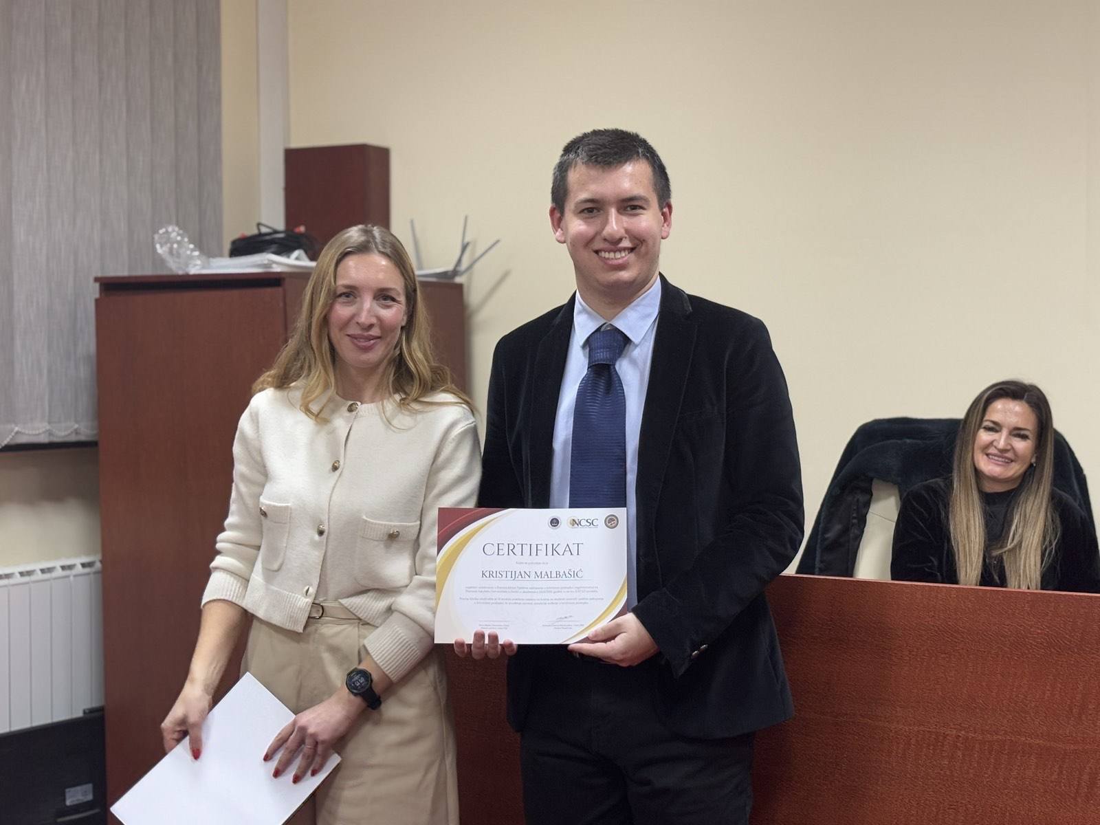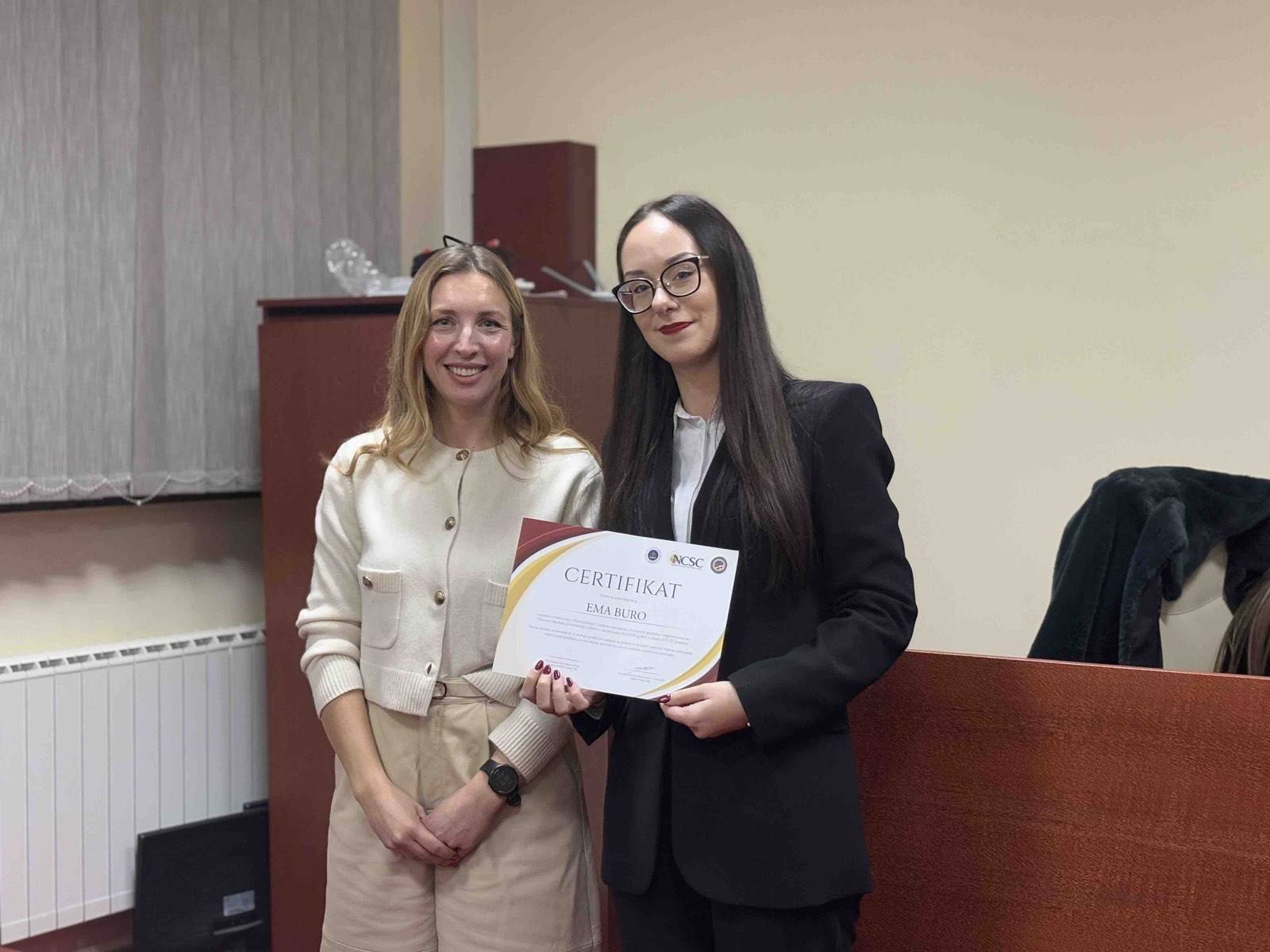U prostorijama fakulteta održana je svečana završnica projekta Pravna klinika “Vještine zastupanja u krivičnim predmetima” koju fakultet realizira zajedno sa Nacionalnim centrom za državne sudove – Uredom u BiH u okviru JUST ED projekta.