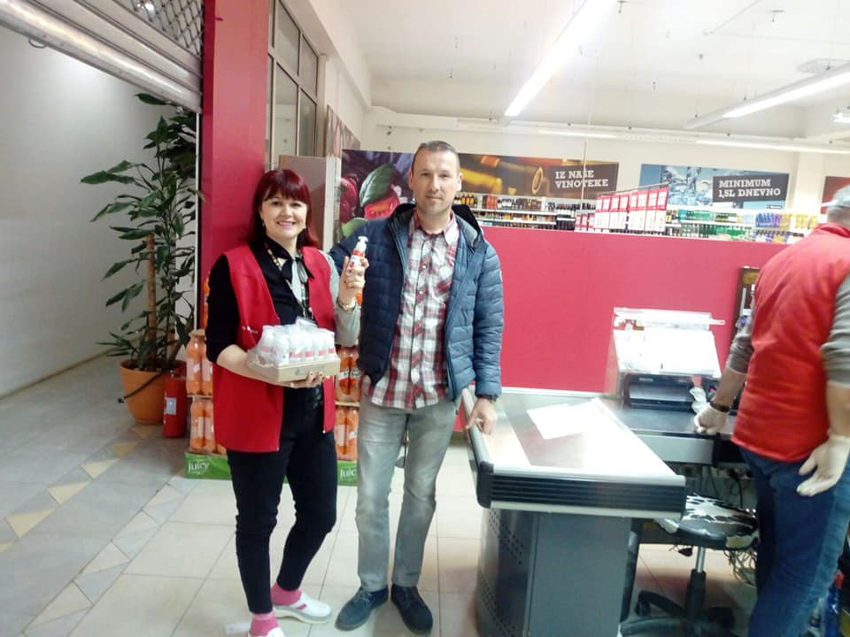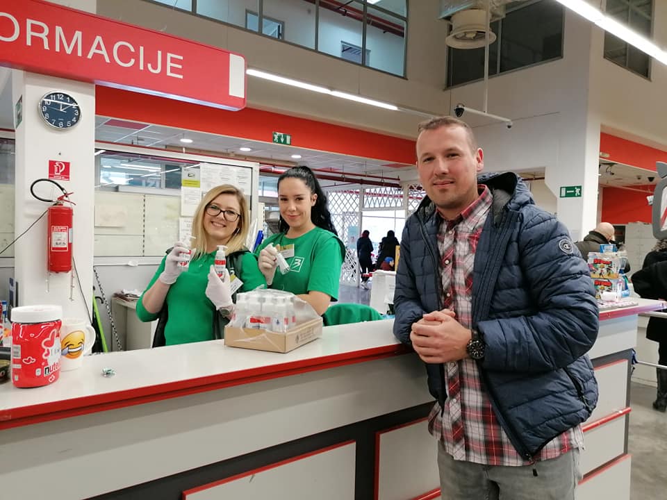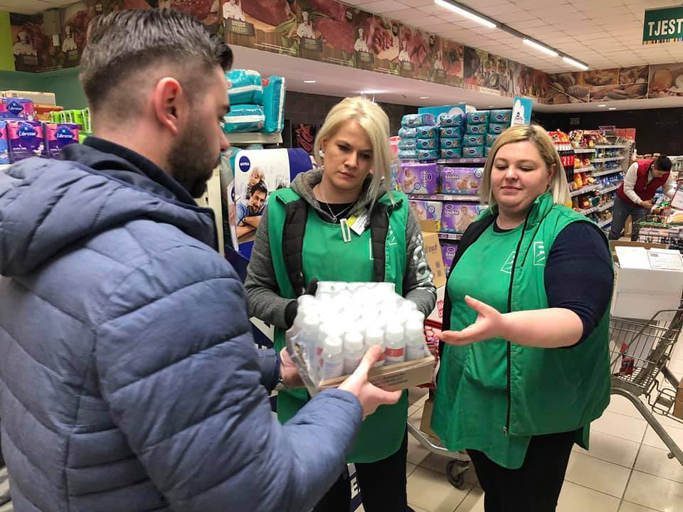 FOTO: Sindikat trgovine BiH zahtjeva finansijsku kompenzaciju za radnike u supermarketima i prodavnicama higijenskih potrepština – STBIH i naši povjerenici su protekli vikend proveli širom BIH i FBIH u obilasku članstva a s ciljem podrške u ovim izuzetno teškim vremenima za sve građane BiH. Ovom prilikom smo obišli više od 100 radnih mjesta i  sa svoje strane radnicima dostavili značajne količine sredstava za dezinfekciju ali smo bili i svjedoci ogromnog povećanja prometa roba posebno osnovnih životnih nmirnica. U velikoj većini objekata, koji već opšte poznato rade s minimumom ljudskih kapaciteta, radnici se bore sa povećanim brojem kupaca, ogromnim povećanjem potražnje jednako kao i sa higijensko epidemiološkim izazovima.