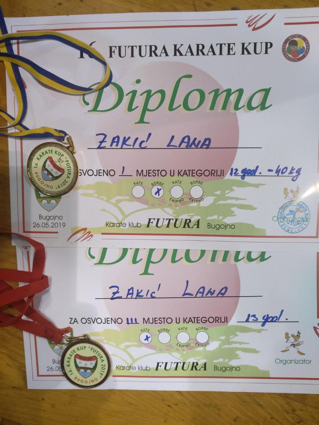 Lana Zakić je osvojila zlato u borbama do 12 godina -40 kg i bronzanu medalju u kategoriji kate 13 godina.