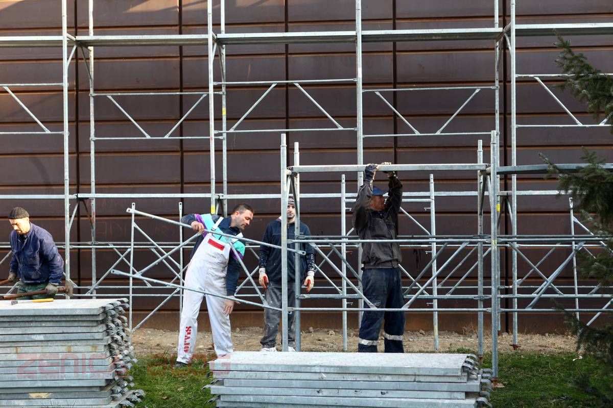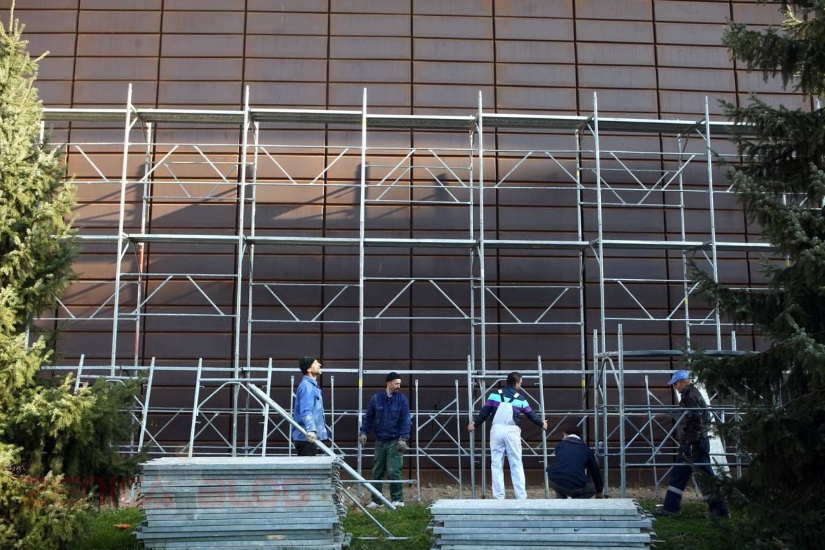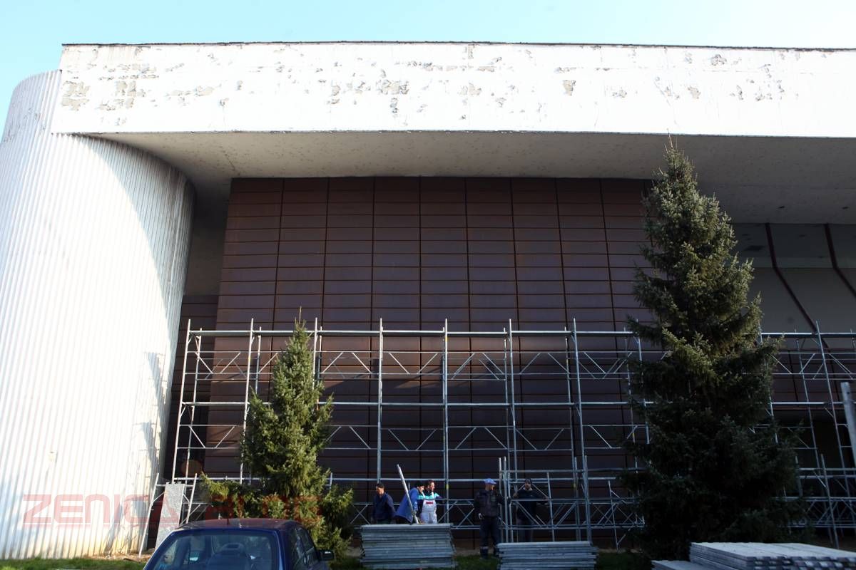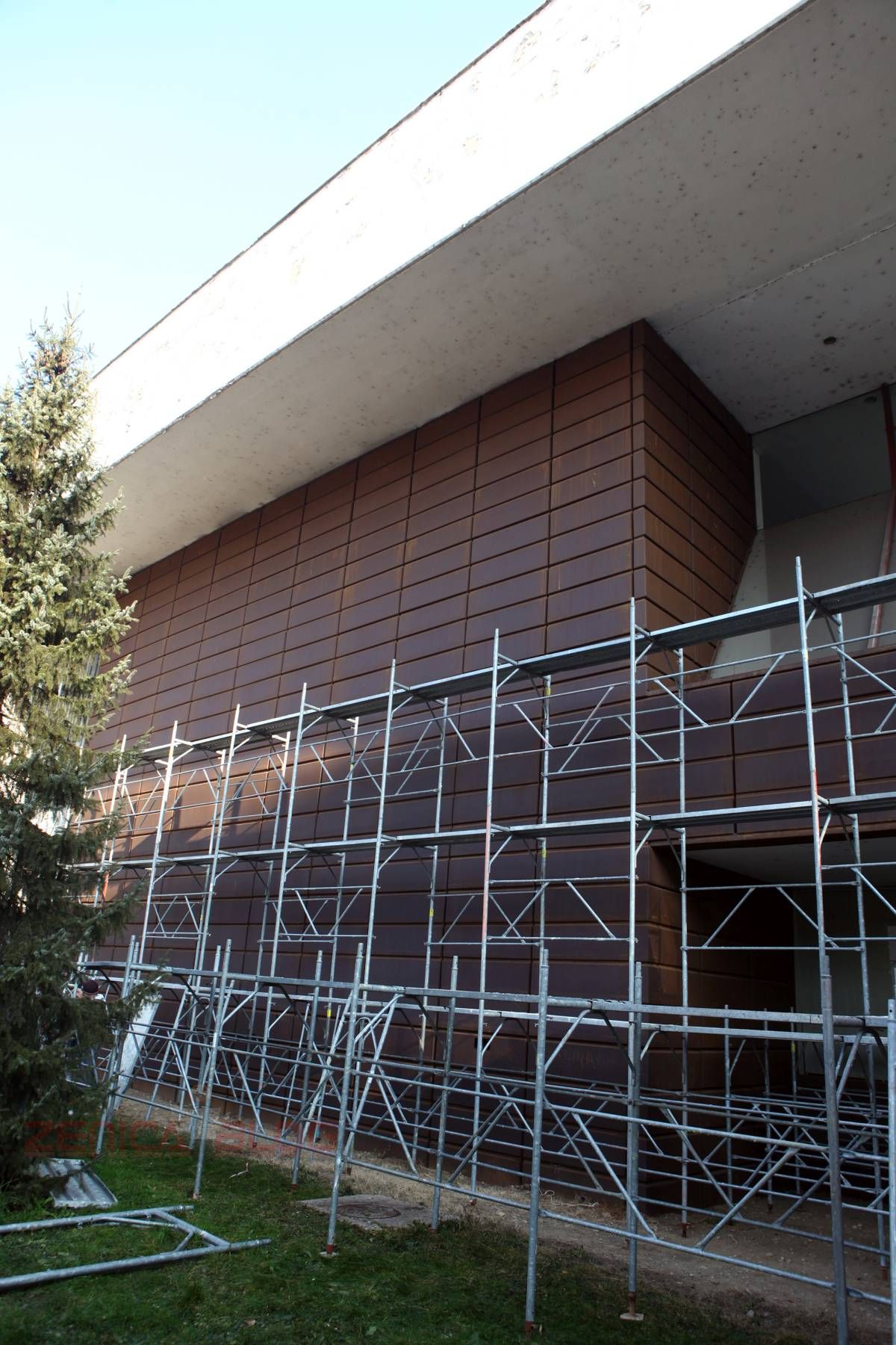 FOTO: skele oko zgrade BNP-a, osigurana sredstva za prvu fazu rekonstrukcije – Bosansko narodno pozorište u Zenici uskoro bi trebalo riješiti svoj problem sa staklenim plohama i fasadom.