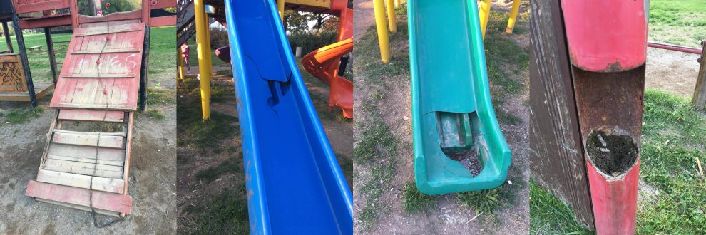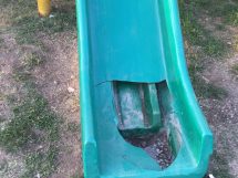 Ovo sam uslikala samo u par minuta na igralištu. Ima toga “more”. Na sve strane strše zahrđani ekseri i šarafi. Tobogani polomljeni. Sigurnost djece nula. O smeću da ne pričam, napisala je.