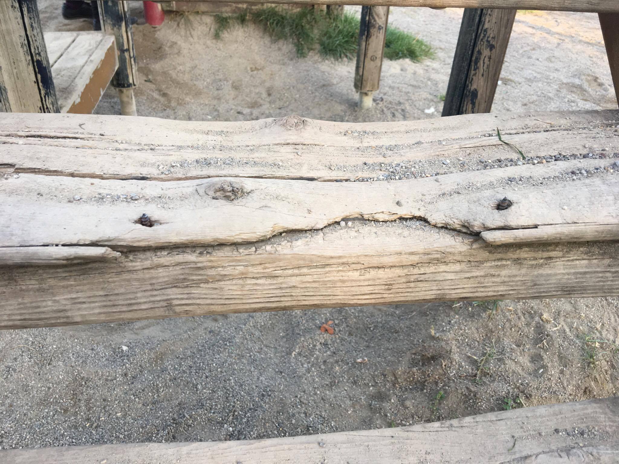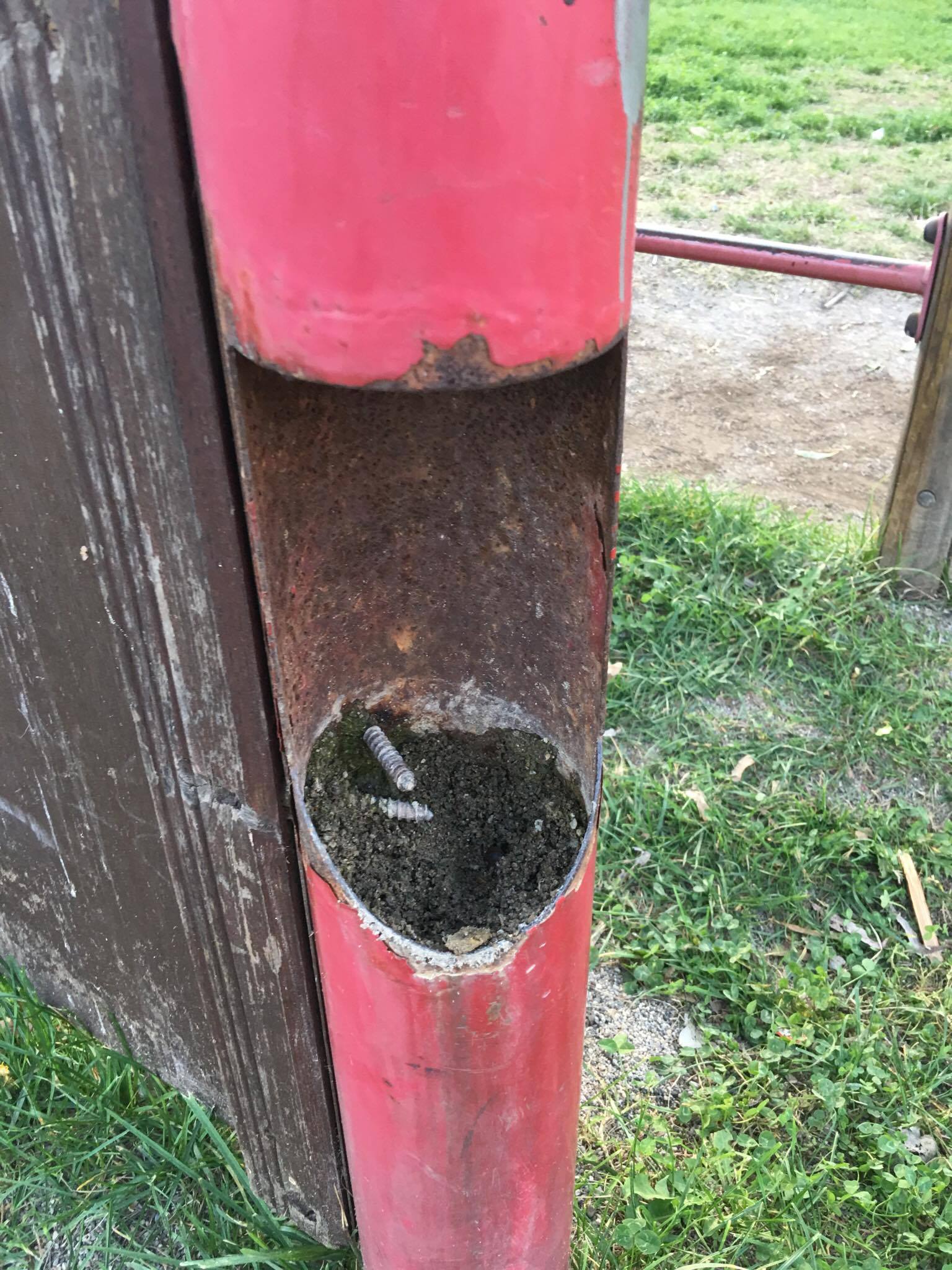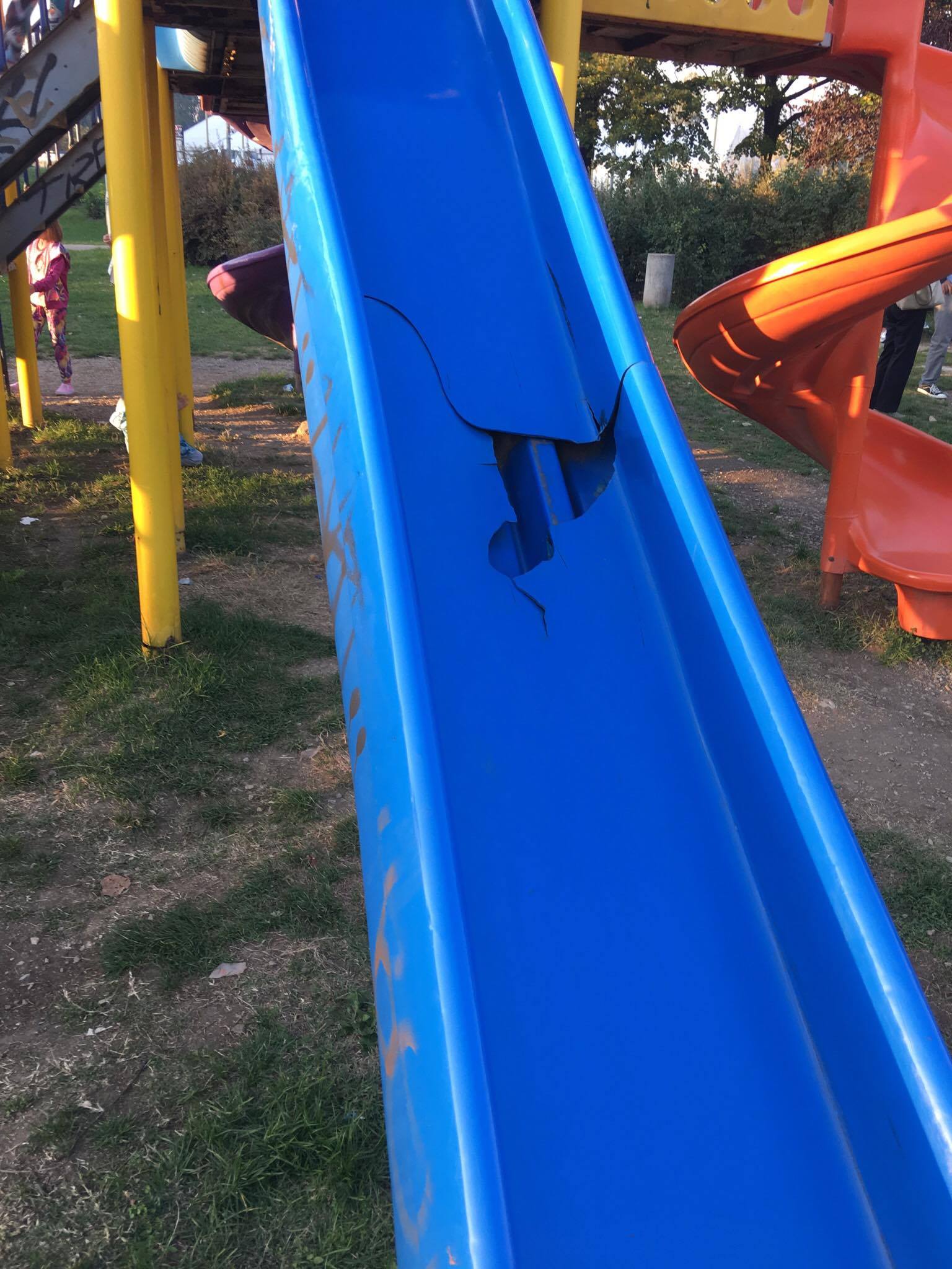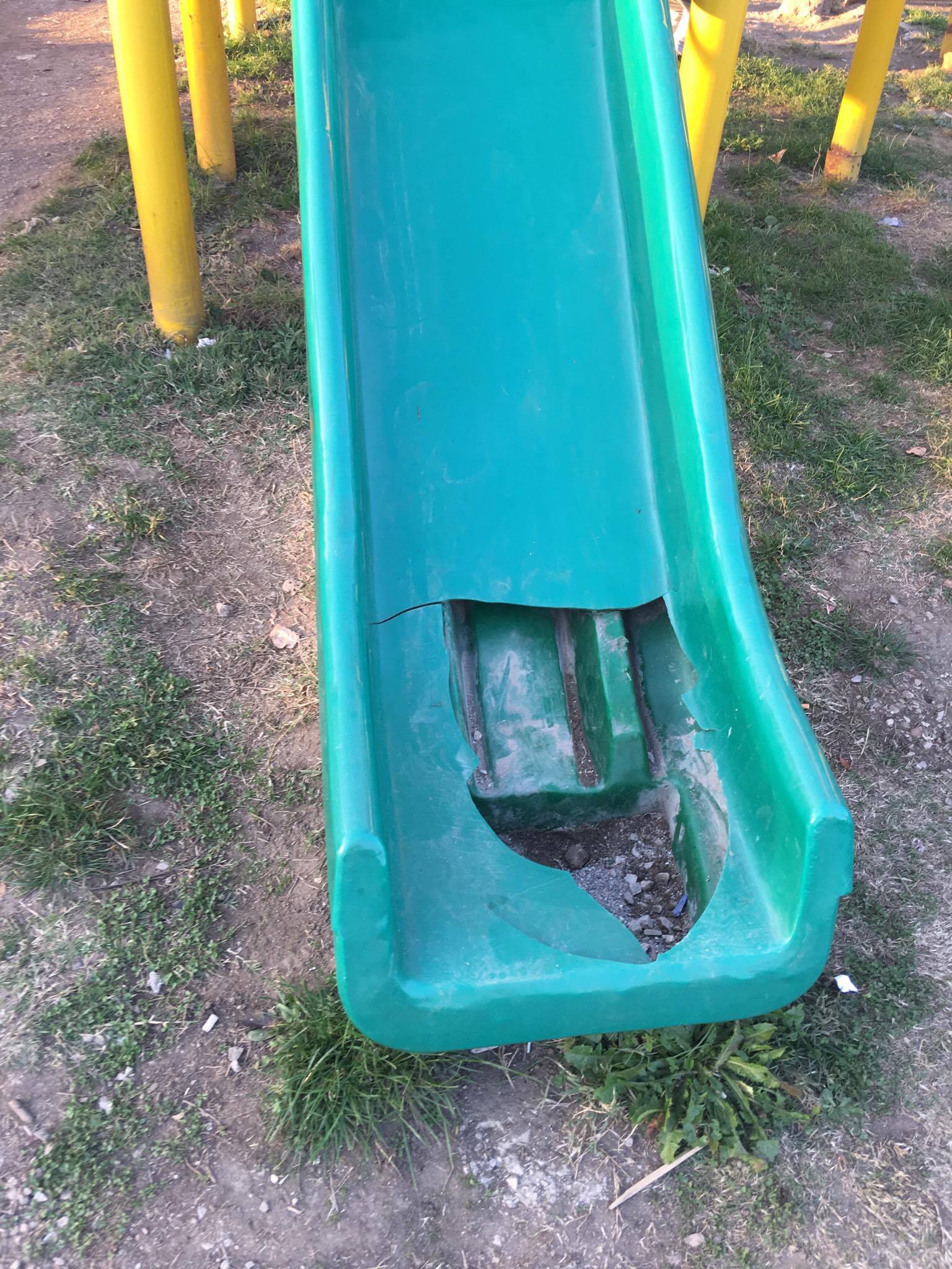 Ovo sam uslikala samo u par minuta na igralištu. Ima toga “more”. Na sve strane strše zahrđani ekseri i šarafi. Tobogani polomljeni. Sigurnost djece nula. O smeću da ne pričam, napisala je.