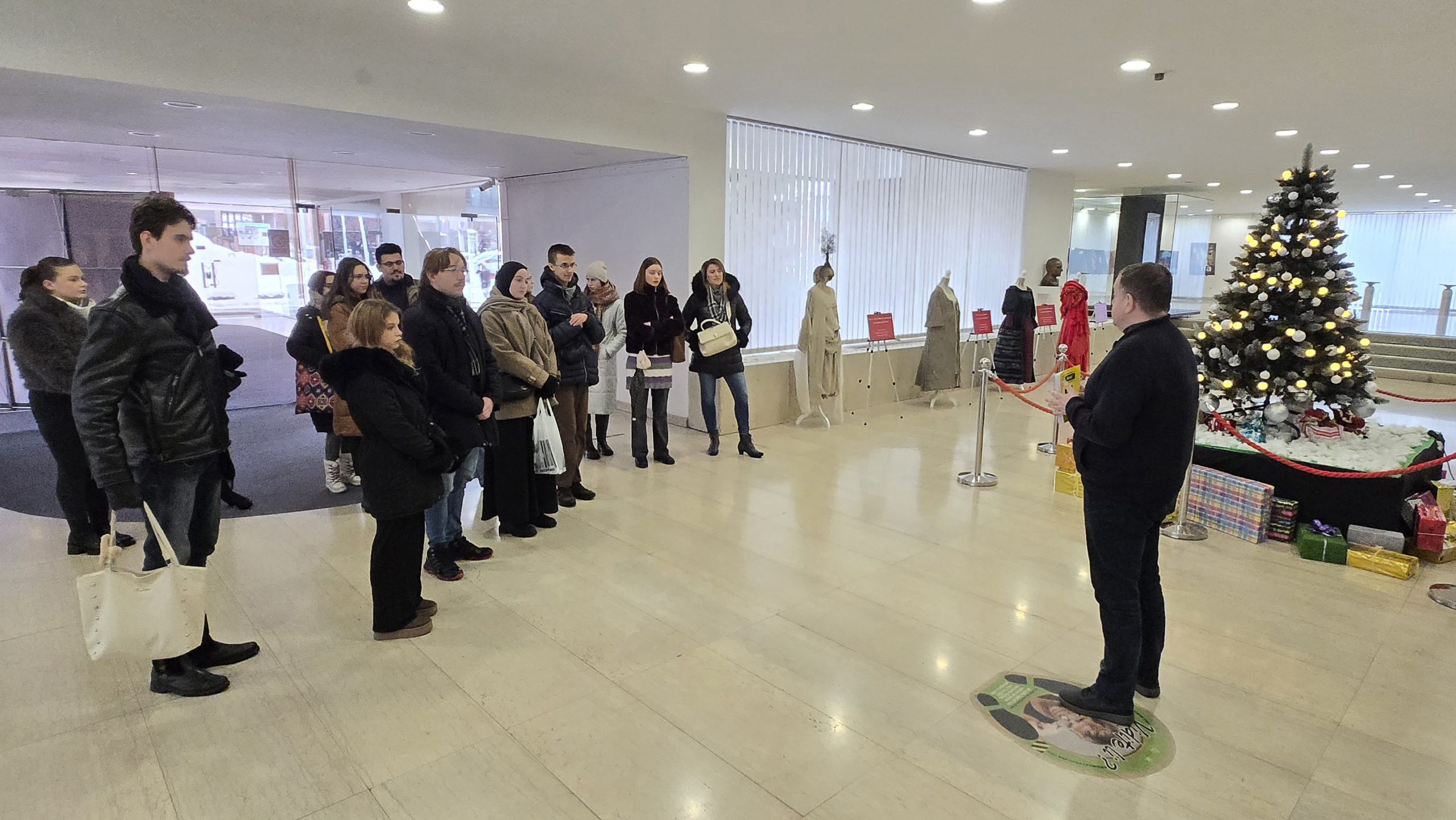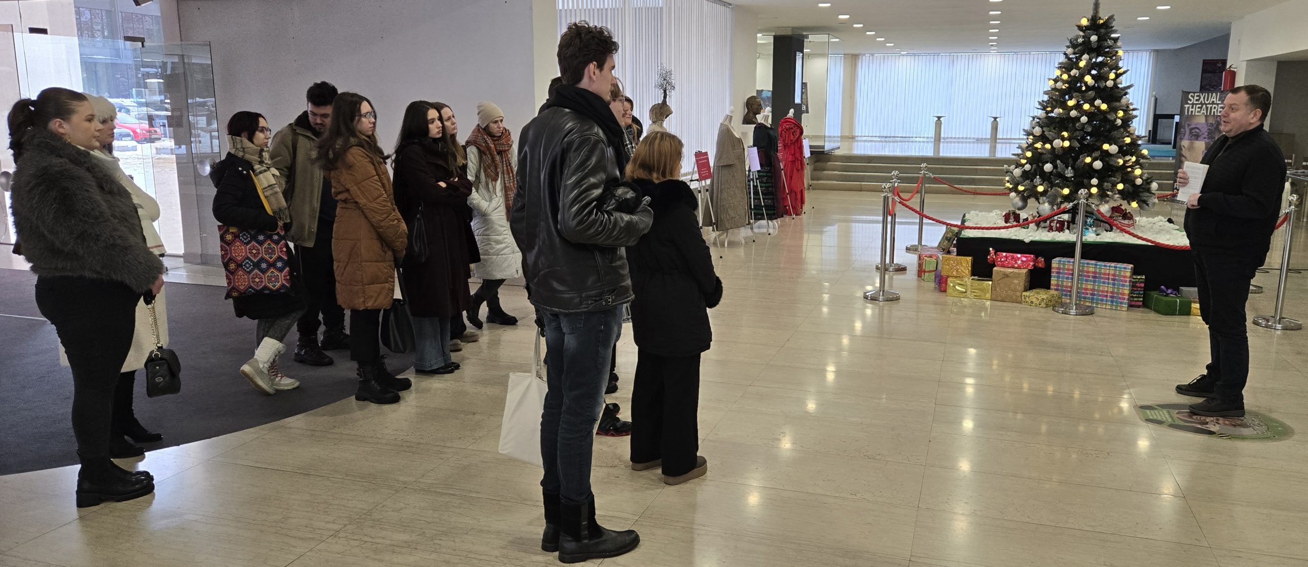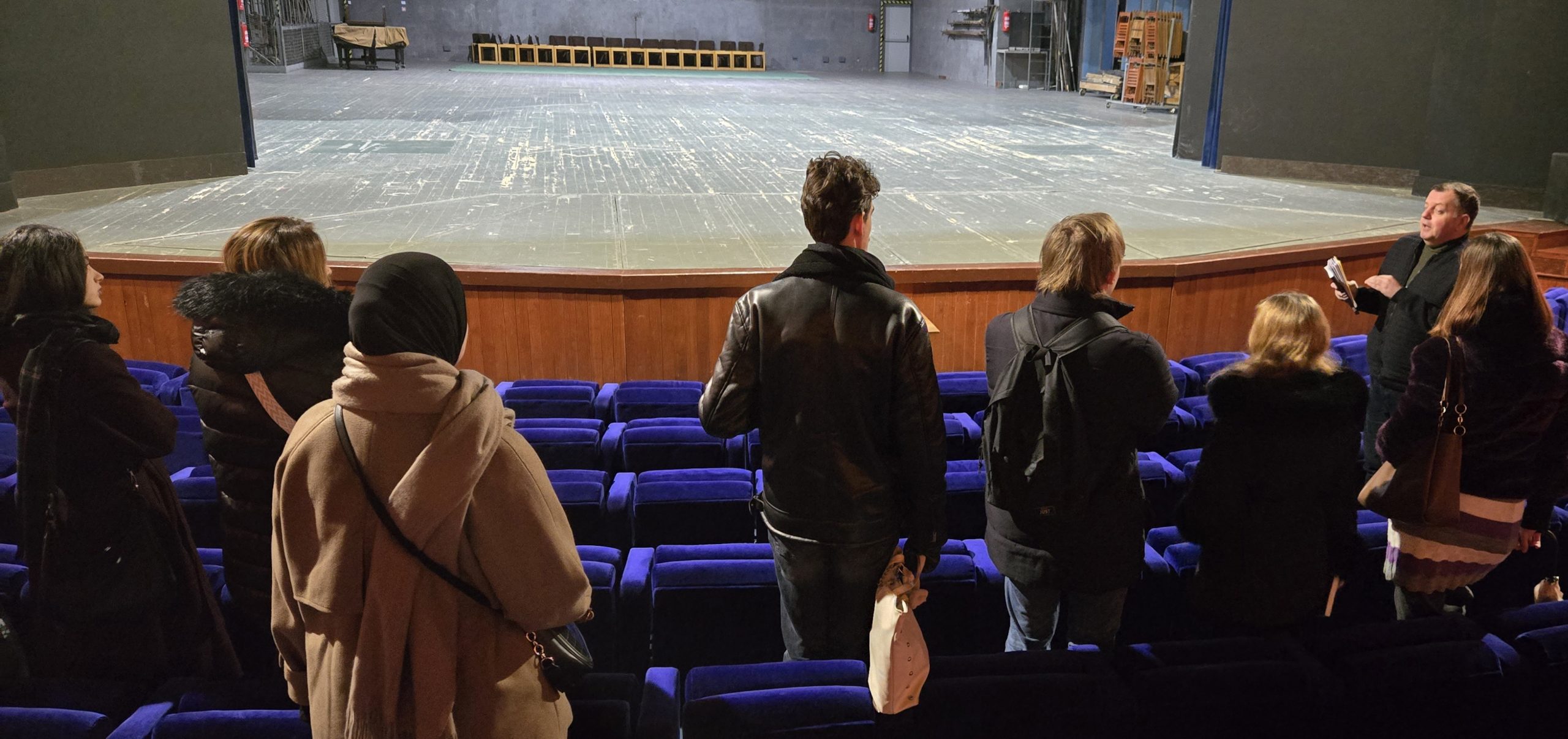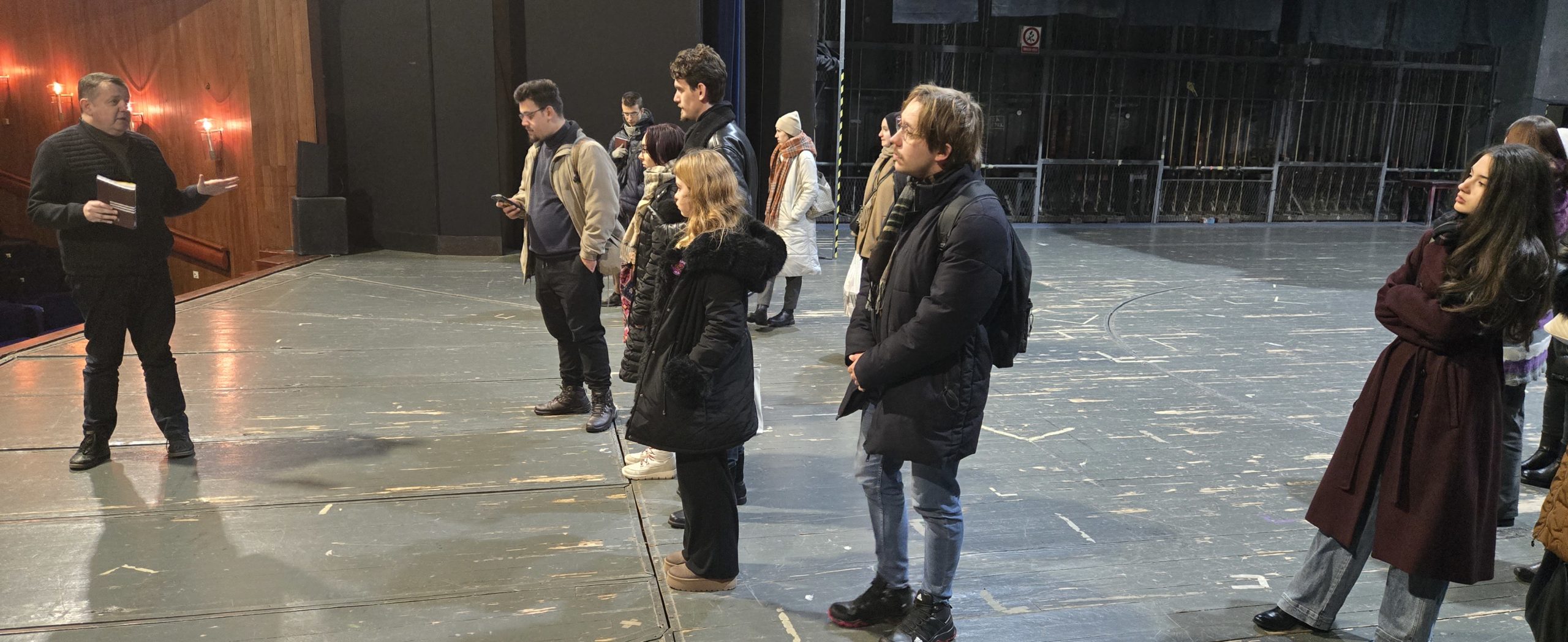Tokom posjete, studenti su obišli dvoranu i kapacitete Velike scene, ostale scenske prostore, tehničke i scenografske radionice, kabine scenske rasvjete i tona, glumačke garderobe, probne sale i magacine, prilikom čega su imali priliku saznati više o organizaciji i izazovima pozorišne produkcije. Mijatović je, kroz inspirativno vodstvo, istakao značaj jednog narodnog pozorišta kao platforme za slobodne umjetničke izraze i društveni dijalog, te ohrabrio studente da stalno istražuju vlastite kreativne potencijale.
