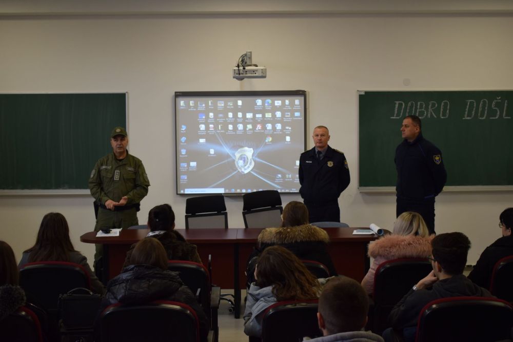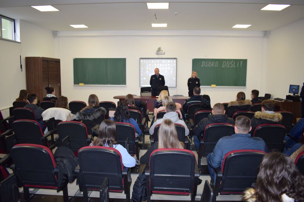 Ovom prilikom studenti su upoznati o organizaciji, načinu rada i funkcionisanju Specijalne policijske jedinice te su prezentirane specijalne vještine i oprema pripadnika navedene jedinice. Također, studenti su informisani o provođenju projekata i kampanja kojima se utiče na povećanje svijesti građana o percepciji i borbi protiv korupcije, opasnostima i posljedicama koje mogu nastati zbog upotrebe oružja te izazovima i posljedicama sa kojima se susreće društvo zbog zloupotrebe opojnih droga. Posebno je naglašena kontinuirana potreba interaktivne komunikacije policije i mladih kroz održavanje edukacija i radionica u osnovnim i srednjim školama koje uključuju davanje preporuka mladim ljudima prilikom prepoznavanja slučajeva vršnjačkog nasilja, maloljetničke delikvencije, cyber kriminala i drugih oblasti koje obuhvata rad policije u zajednici.