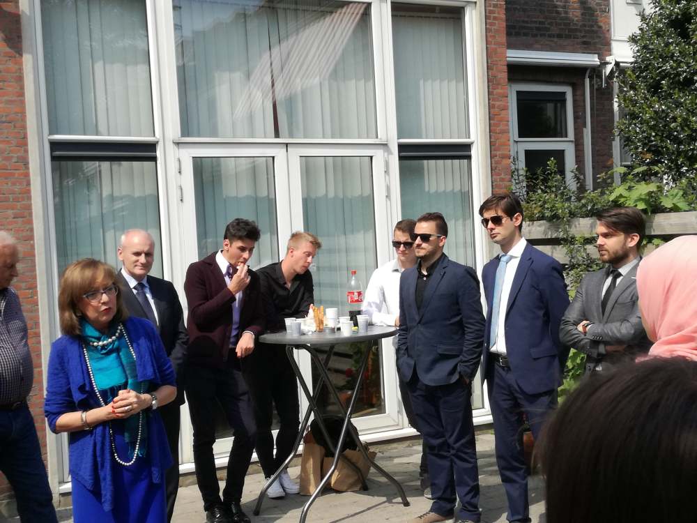 Studenti su posjetili Ambasadu BiH u Den Haagu gdje je za njih prijem priredila ambasadorica Mirsada Čolaković sa saradnicima. Ambasada pokriva i Portugal, Međunarodnu agenciju za hemijsko razoružanje, kao i sve sudove u Den Haagu.