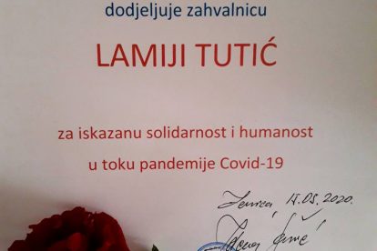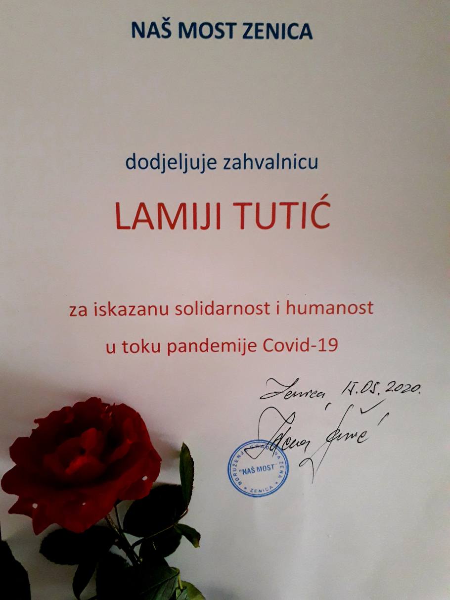 Naš trud i zalaganje je prepoznat te je naša trenerica Lamija Jašarević-Tutić koja je vodila projekat nagrađena titulom  “Zvijezda karantine” od strane U.G. Naš most. Lamiji je uručena zahvalnica i slika kao nagrada od strane U.G. Naš Most, a uručile su joj umjetnice Zdena Šarić-Piskar i Meliha Bičo-Družić.