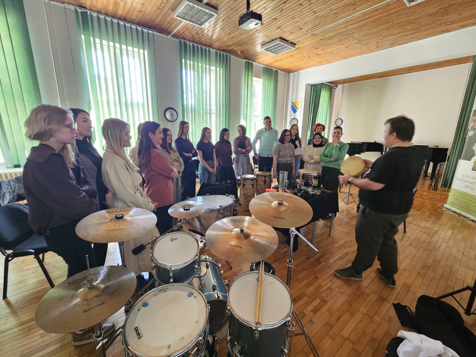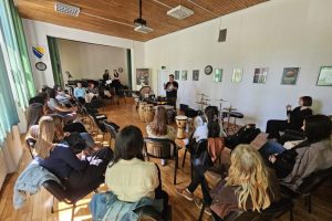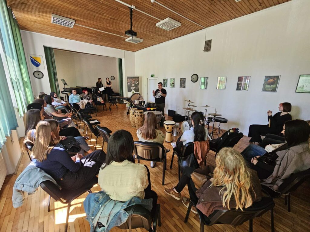Kroz spoj teorije i praktičnog rada, studenti su imali priliku upoznati različite vrste udaraljki, ali i aktivno učestvovati u radionici, istražujući ritam i zvuk kroz vlastito iskustvo. Ovakav pristup dodatno je naglasio značaj muzike kao univerzalnog jezika koji povezuje ljude.