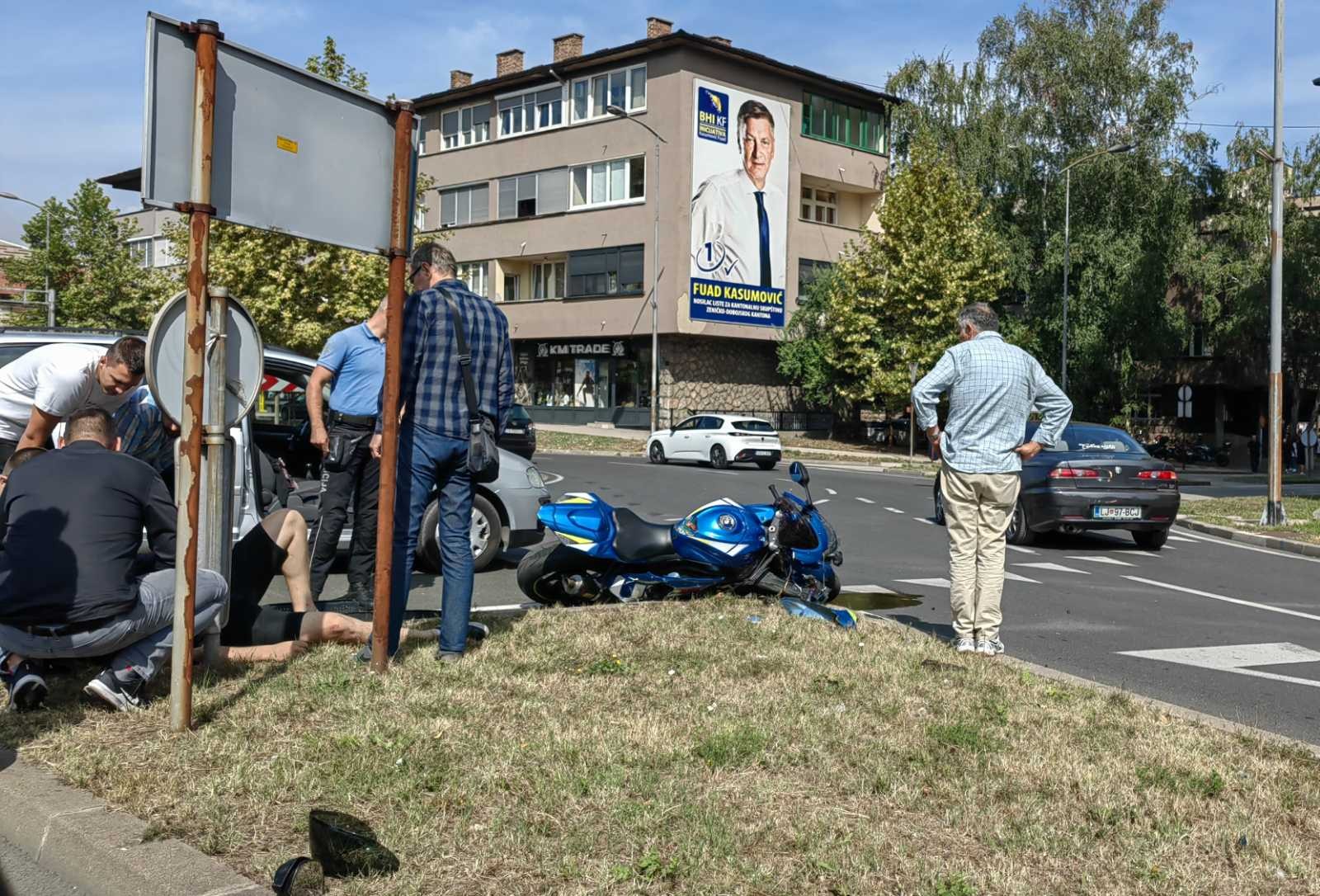 FOTO: Sudar automobila i motora na kružnom toku- U 13:35h u Zenici je na kružnom toku na GGM-u kod MUP-a ZDK došlo do sudara automobila i motora.