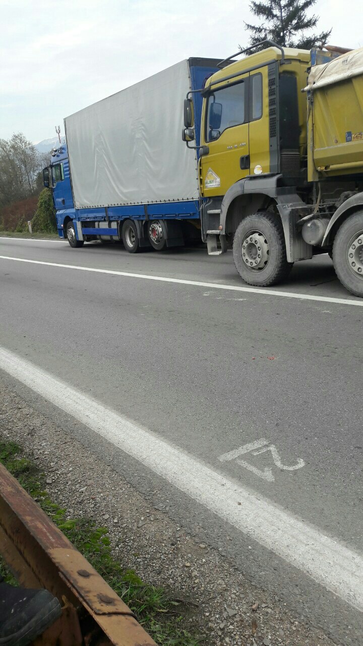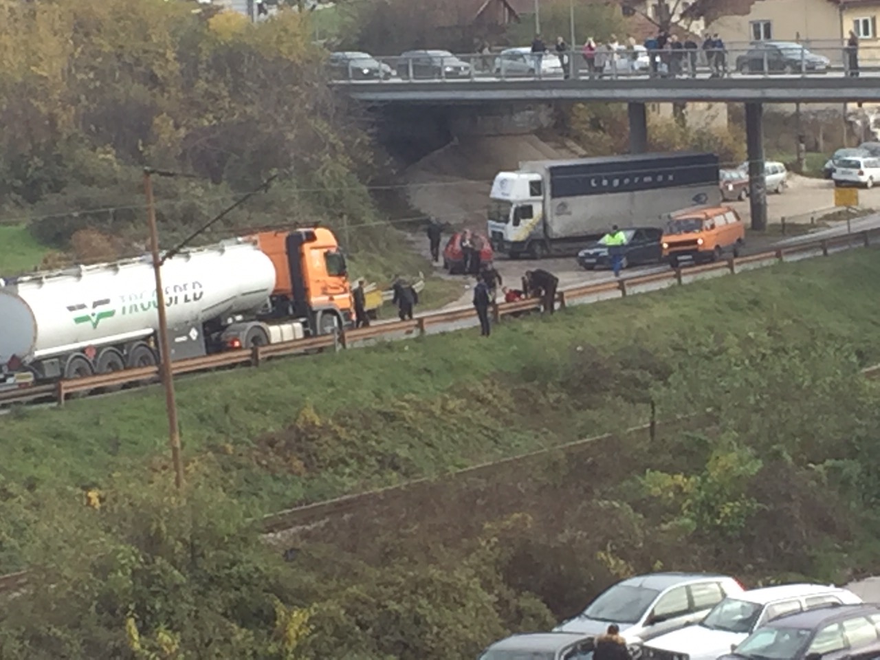 Kako smo saznali prvo su se sudarili putničko vozilo i kamion, koji su se nakon toga na cesti zaustavili na nepropisan način da se dogovore oko namirenja štete. Zatim su naišla dva kamiona, prvi je uspio zakočiti, a drugi je udario u njega. Na vozilima je pričinjena materijalna šteta, a uviđaj vrše pripadnici MUP-a ZDK.