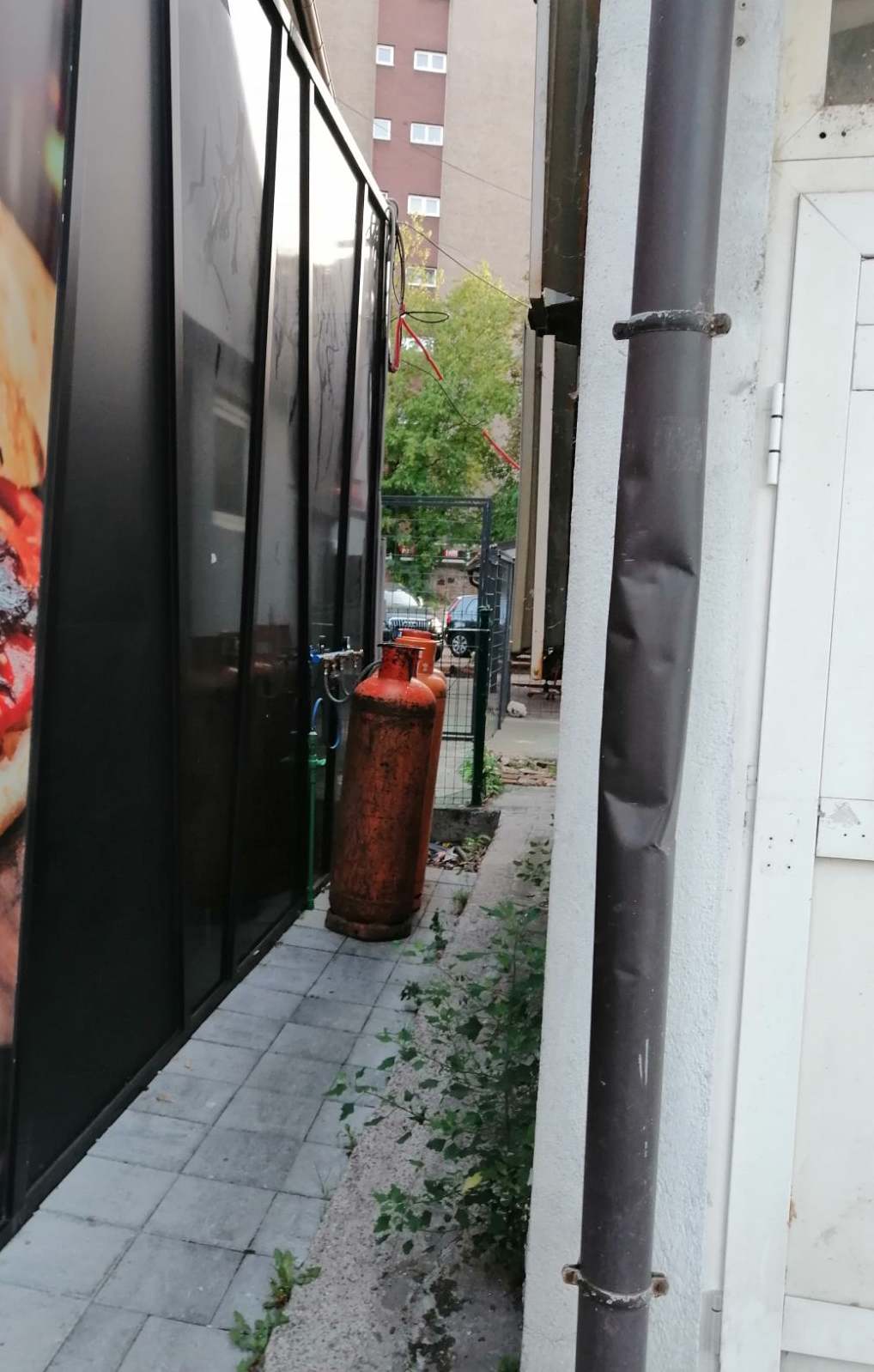 Obraćam Vam se kao građanka Grada Zenice, koja je primjetila da se na lokaciji Trg Alije Izetbegovića, u neposrednoj blizini ugostiteljskog objekta „Korzo“, tačnije uz montažni ugostiteljski objekat koji je otvoren za prodaju donera (ranije objekat pod nazivom „Mlinar“ ), uz objekat, na javnoj površini, nalaze dvije dvije (2) velike plinske boce.