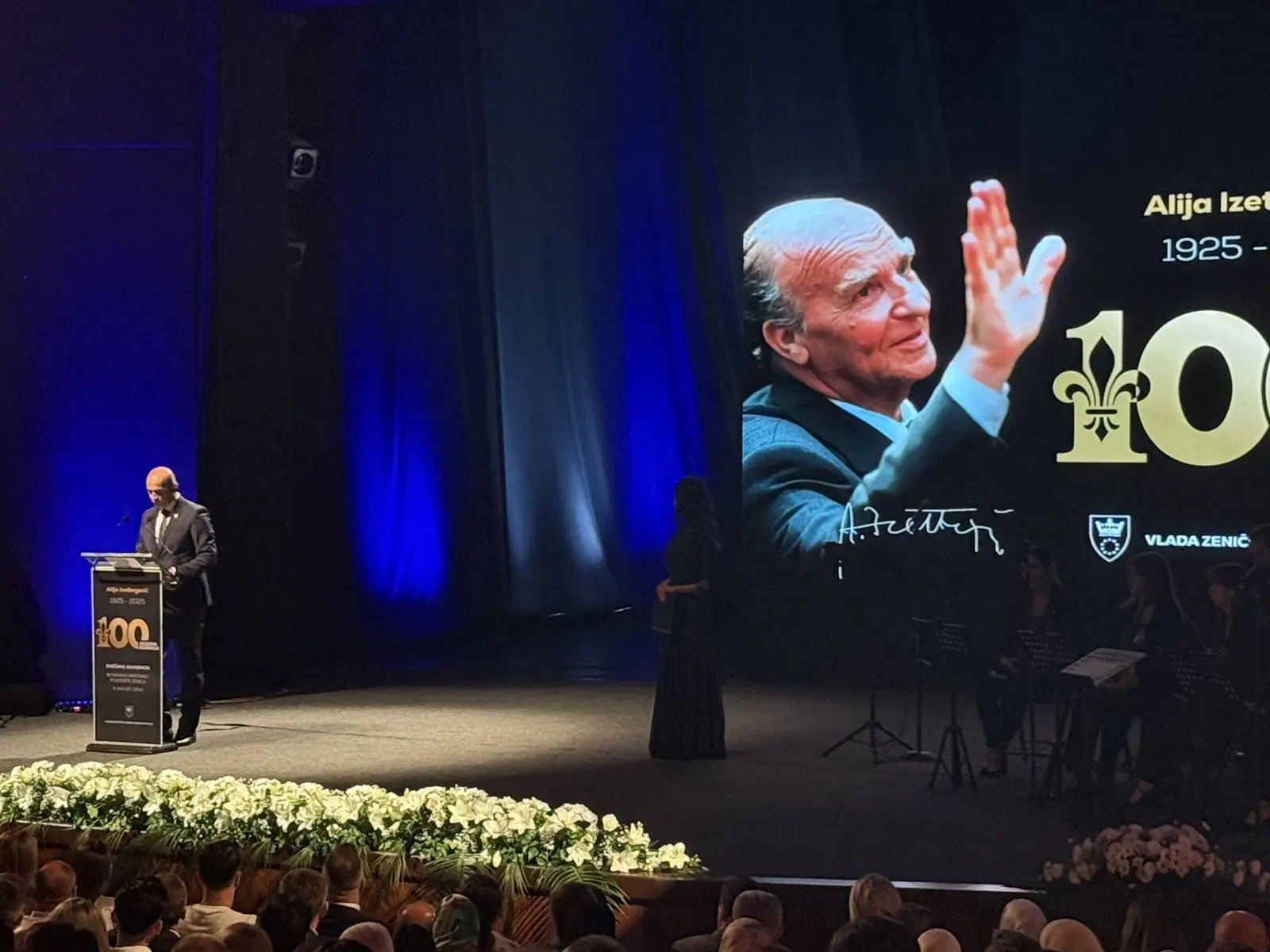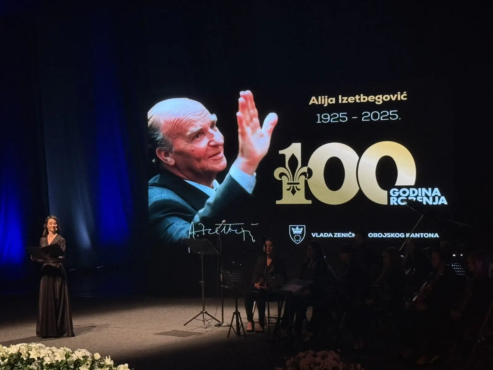 Centralna svečanost obilježavanja 100. godišnjice rođenja prvog predsjednika međunarodno priznate i nezavisne Bosne i Hercegovine Alije Izetbegovića održana je večeras u Bosanskom narodnom pozorištu u Zenici, u organizaciji Vlade Zeničko-dobojskog kantona. Svečanost, kojoj prisustvuju zvanice iz društvenog, političkog i kulturnog života u Bosni i Hercegovini te gosti iz regiona, bila je prilika da se oda počast čovjeku čije su ime i djelo duboko urezani u modernu historiju Bosne i Hercegovine. Kako su napomenuli organizatori, pripreme za realizaciju projekta trajale su šest mjeseci, a nastojalo se ukazati na značaj narativa da intelektualno i političko naslijeđe Alije Izetbegovića postaje važnije i vrijednije sa protokom vremena.