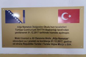 Postavljeno je novih 350 kvadratnih metara keramičkih pločica, uređeni su novi odvodi, cijevi, postavljena je nova stolarija i druga propratna oprema. I u prošlosti turska vojna misija u BiH je pomagala u rješavanju infrastrukturnih problema u OŠ Alija Nametak,a kao i u velikom broju drugih škola širom BiH. Hvala Republici Turskoj, hvala Turskoj armiji, hvala komadantu turske vojne misije u BiH brigadiru Tayfun Čeliku.