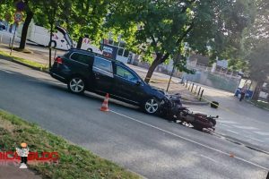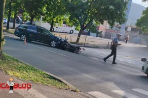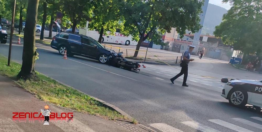 Na Bulevaru Kulina bana, kod hotela Internacional u 18:35 došlo je do saobraćajne nesreće u kojoj su učestvovali putnički automobil “Passat” i motocikl “Yamaha”.