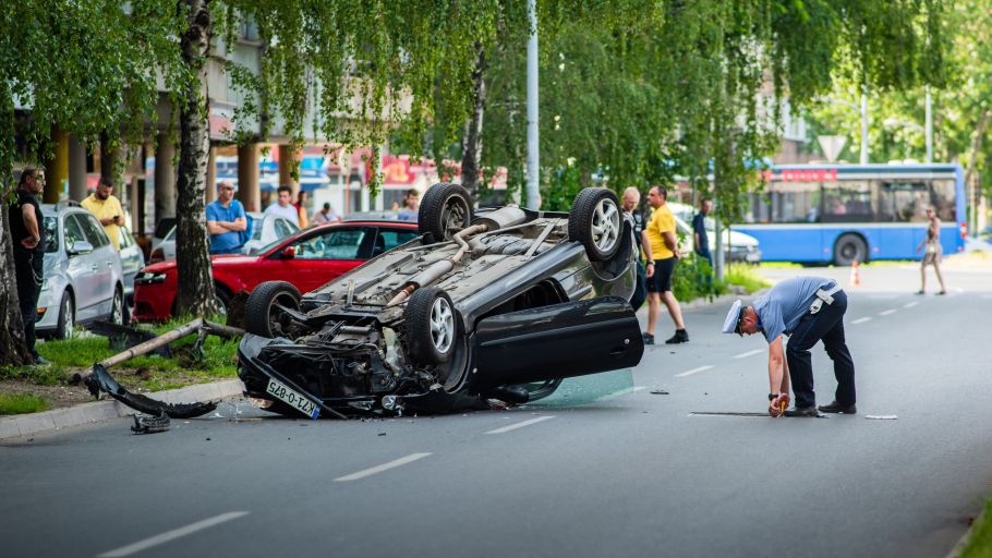 FOTO: Teška saobraćajna nesreća kod Autobuske stanice- U popodnevnim satima u ulici Bulevar Kralja Tvrtka dogodila se saobraćajna nesreća u kojoj je prema dostupnim informacijama automobil marke Pežo udario u stub ulične rasvjete i prevrnuo se na krov.