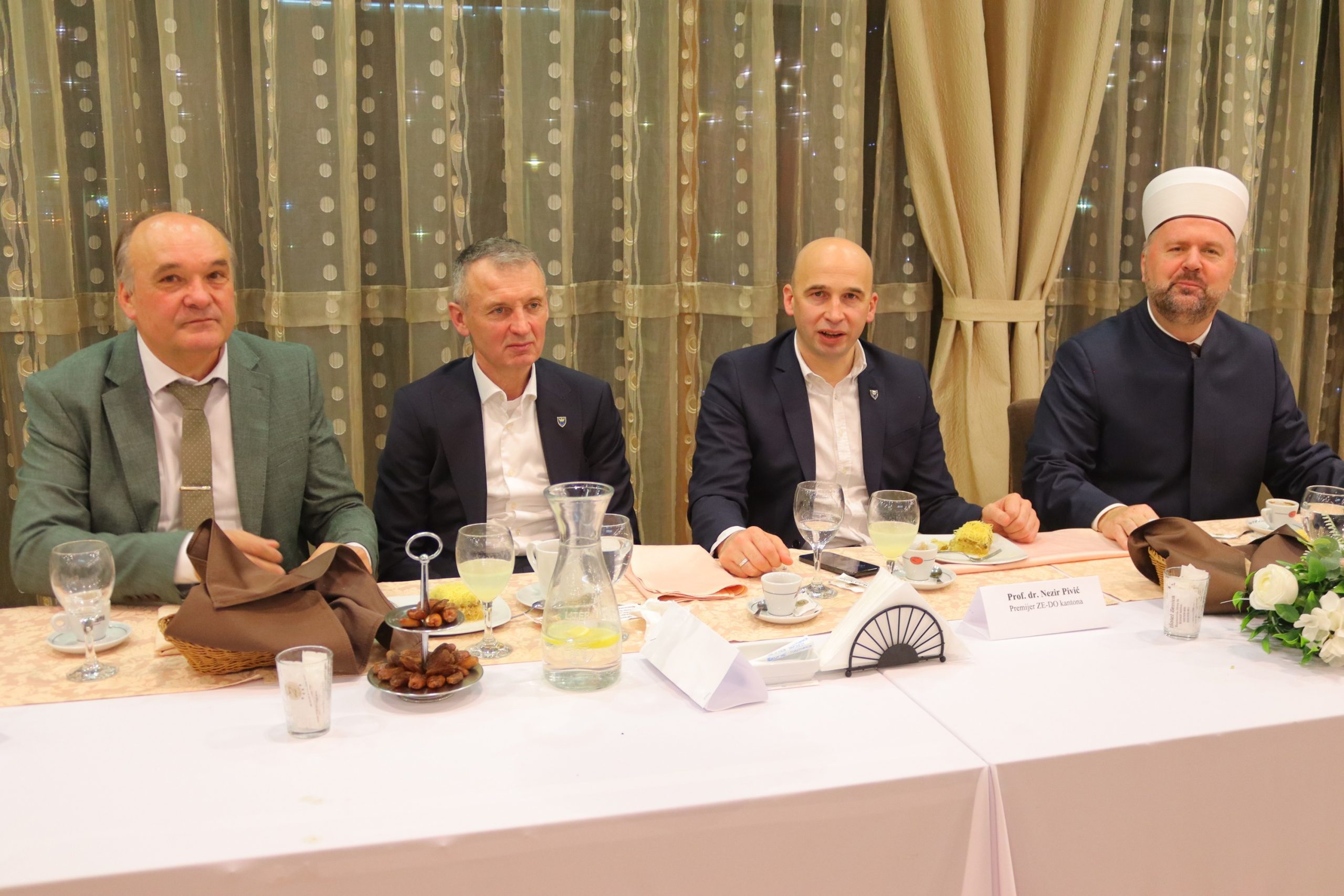 Domaćini iftara, kojem se odazvao veliki broj uglednih zvanica, bili su muftija zenički, hafiz prof. dr. Mevludin-ef. Dizdarević, te h. Besim Begić, vlasnik firme Almy-Transport d.o.o.