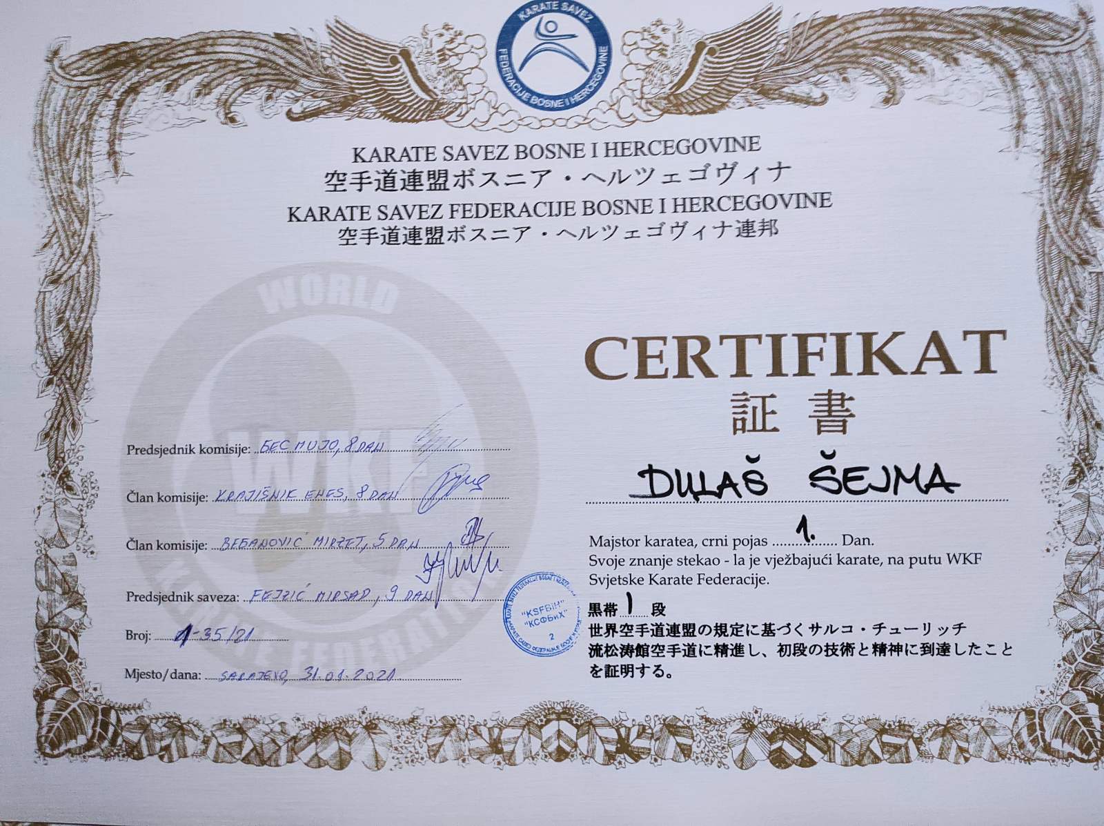 – Fejzić Mirsad-CRNI POJAS 9.DAN-Predsjednik KS FBIH