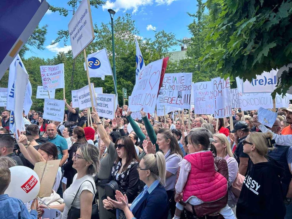 Sindikat radnika trgovine Bosne i Hercegovine (STBIH) organizirao je danas u Sarajevu protest zbog najave uvođenja 16 radnih nedjelja trgovcima s ključnom porukom „Ne damo nedjelju“.