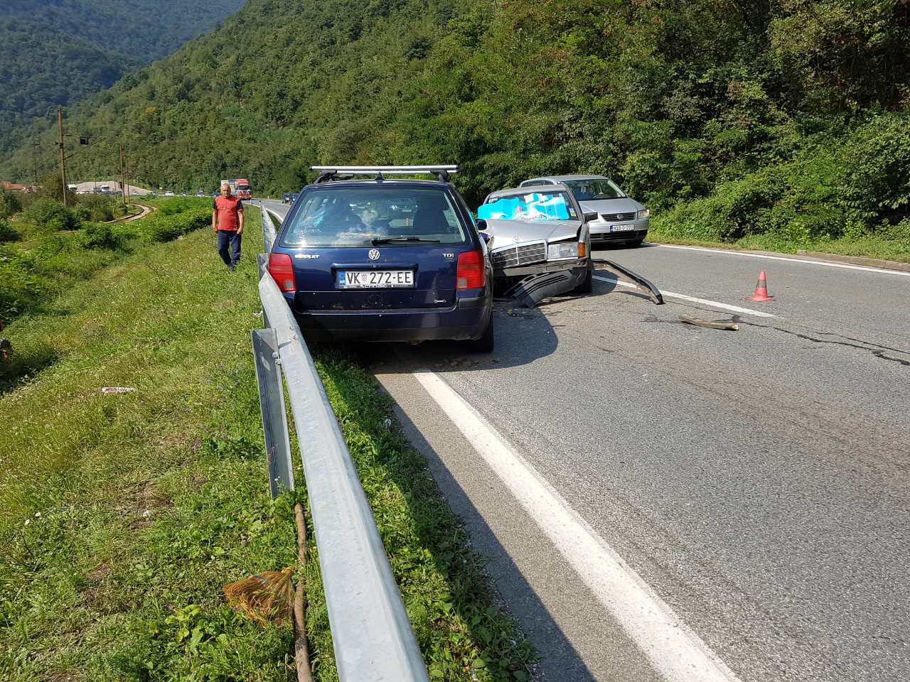 Kako nam je rečeno u policiji, stepen povreda još nije utvrđen. Saobraćaj ovom dionicom magistralnog puta se odvijao usporeno tokom uviđaja. FOTO: I. Sačak