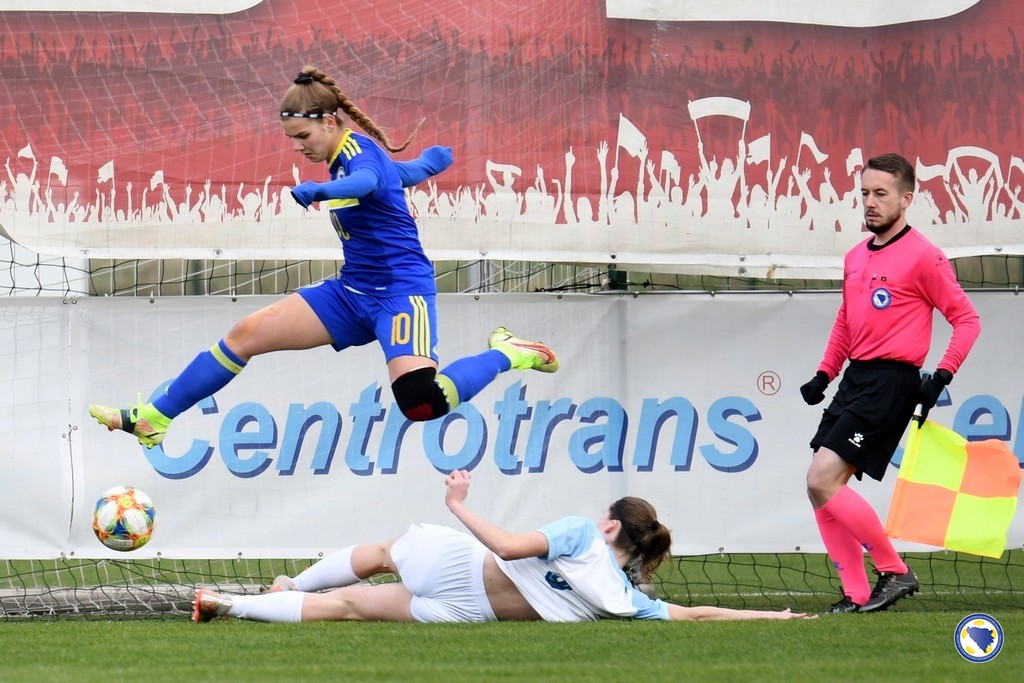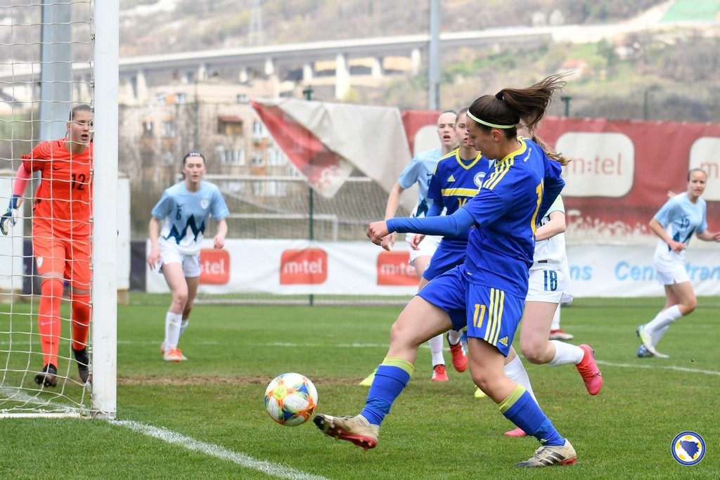Ajla Građan u 16′ odlično šutira sa preko dvadeset metara sa lijeve strane i pogađa mrežu za 1:0. Nina Pupić u 24′ odlično prolazi po desnoj strani i šalje loptu u protivnički kazneni prostor, a slovenačka igračica Ajda Zajc nespretno reaguje i skreće loptu u vlastitu mrežu.