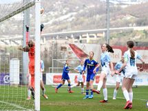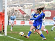 Ivona Radošević u 74′ sa desetak metara lobuje golmanicu Slovenije i postiže treći gol za Bosnu i Hercegovinu.