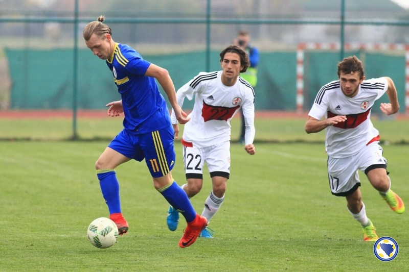 Jusuf Gazibegović je u 80′ odlično prošao po desnoj strani i ubacio ka Nedimu Hadžiću čiji šut sa desetak metara golman Gruzije brani.