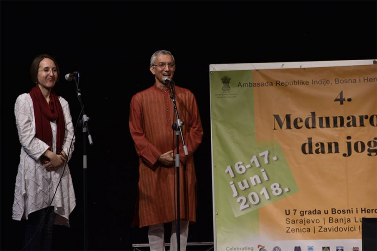 FOTO: U BiH obilježen 4. Međunarodni dan joge – U BiH obilježen 4. Međunarodni dan joge – Ambasada Indije u Budimpešti proslavila je 4. Međunarodni dan joge (IDI) u sedam gradova Bosne i Hercegovine, odnosno Sarajevo, Banja Luka, Foča, Mostar, Tuzla, Zavidovići i Zenica. Proslave su se održavale od 16. do 17. juna 2018. godine. Proslava je uključivala predstavljanje joge, Indijske kulturne predstave, henna slikarstvo i indijske kuhinje.