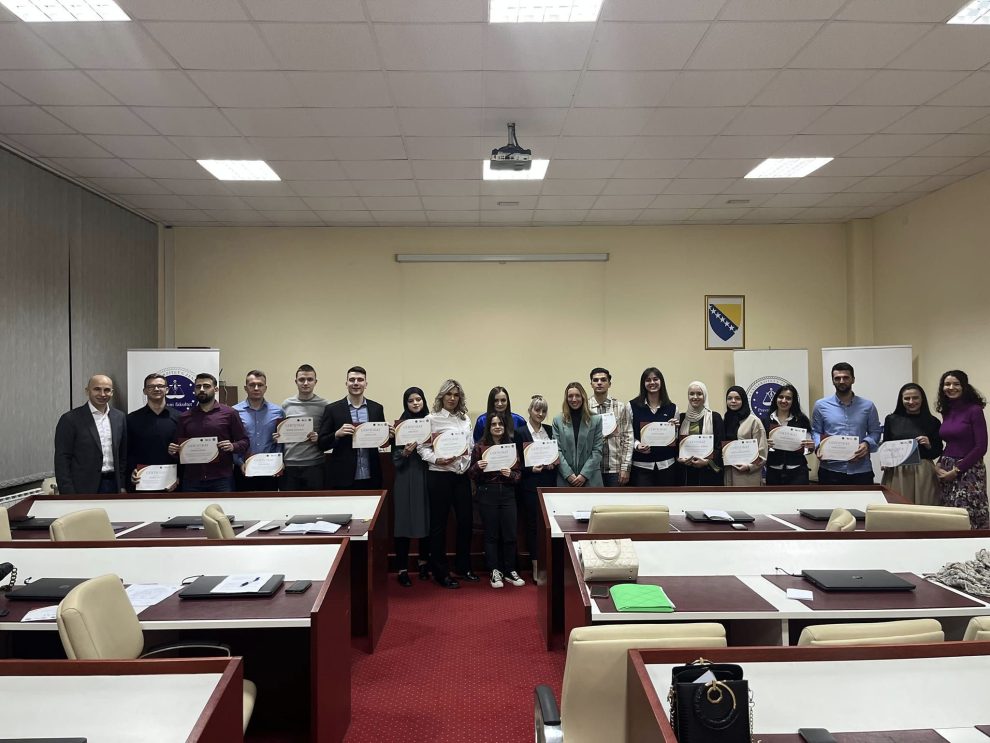 Simulacijom suđenja i podjelom certifikata okončana je ovogodišnja Pravna klinika “Vještine zastupanja u krivičnom postupku” na Pravnom fakultetu Univerziteta u Zenici, koja je realizirana u sklopu “JUST ED” projekta, a koju je taj zenički fakultet realizirao u partnerstvu s Nacionalnim centrom za državne sudove – Ured u BiH te pravnim stručnjacima iz prakse.