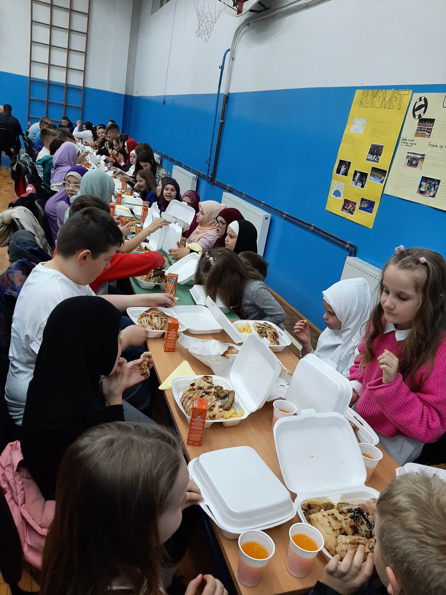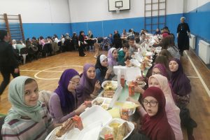 Sinoć, 18. 4. 2023.godine upriličen je zajednički iftar za sve učenike naše škole. Da škola može biti “po mjeri učenika”, odgajati i obrazovati, ali i pratiti duhovni razvoj ličnosti, jačati zajedništvo, poštovanje i ljubav, kao i druge pozitivne osobine ličnosti, svjedočila je i večeras naša škola. Osim zajedničkog iftara, upriličen je i prigodan program koji su izveli učenici škole.