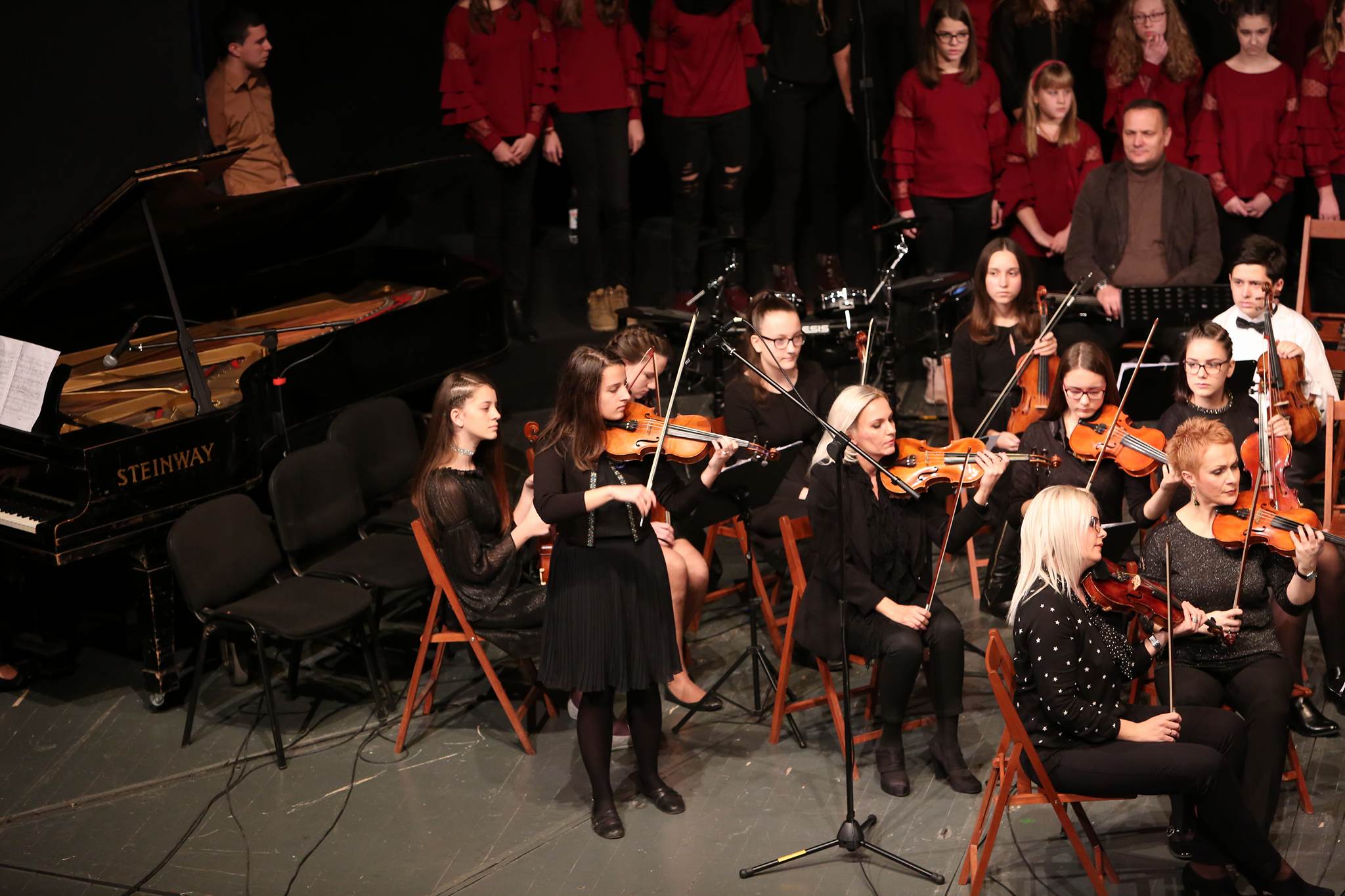 Sve njihove izvedbe su popraćene uz pratnju gudačkog orkestra škole. Na velikoj sceni nastupili su mali i veliki hor koji su izveli kompozicije filmske muzike.